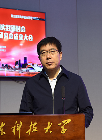 青岛市委政法委副书记刘祝三出席会议并讲话,山东科技大学党委常委、宣传部部长李克周出席会议并致欢迎辞。会上,青岛市法学会专职副会长白雪青宣读了青岛市法学会《关于设立青岛市法学会社会治理研究会的批复》文件并主持研究会选举程序,会议选举山东科技大学文法学院(知识产权学院)院长孙法柏担任青岛市法学会社会治理研究会首任会长。