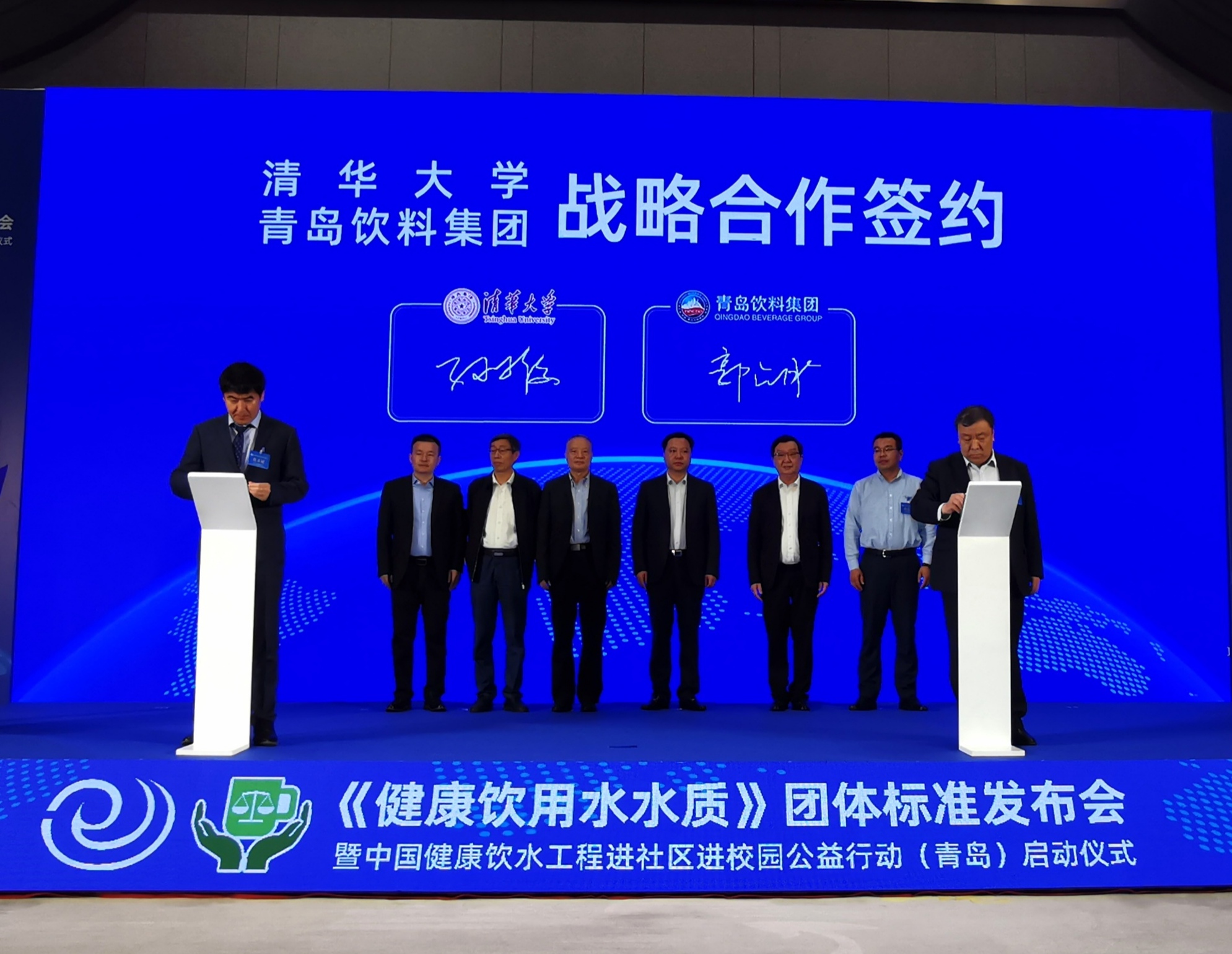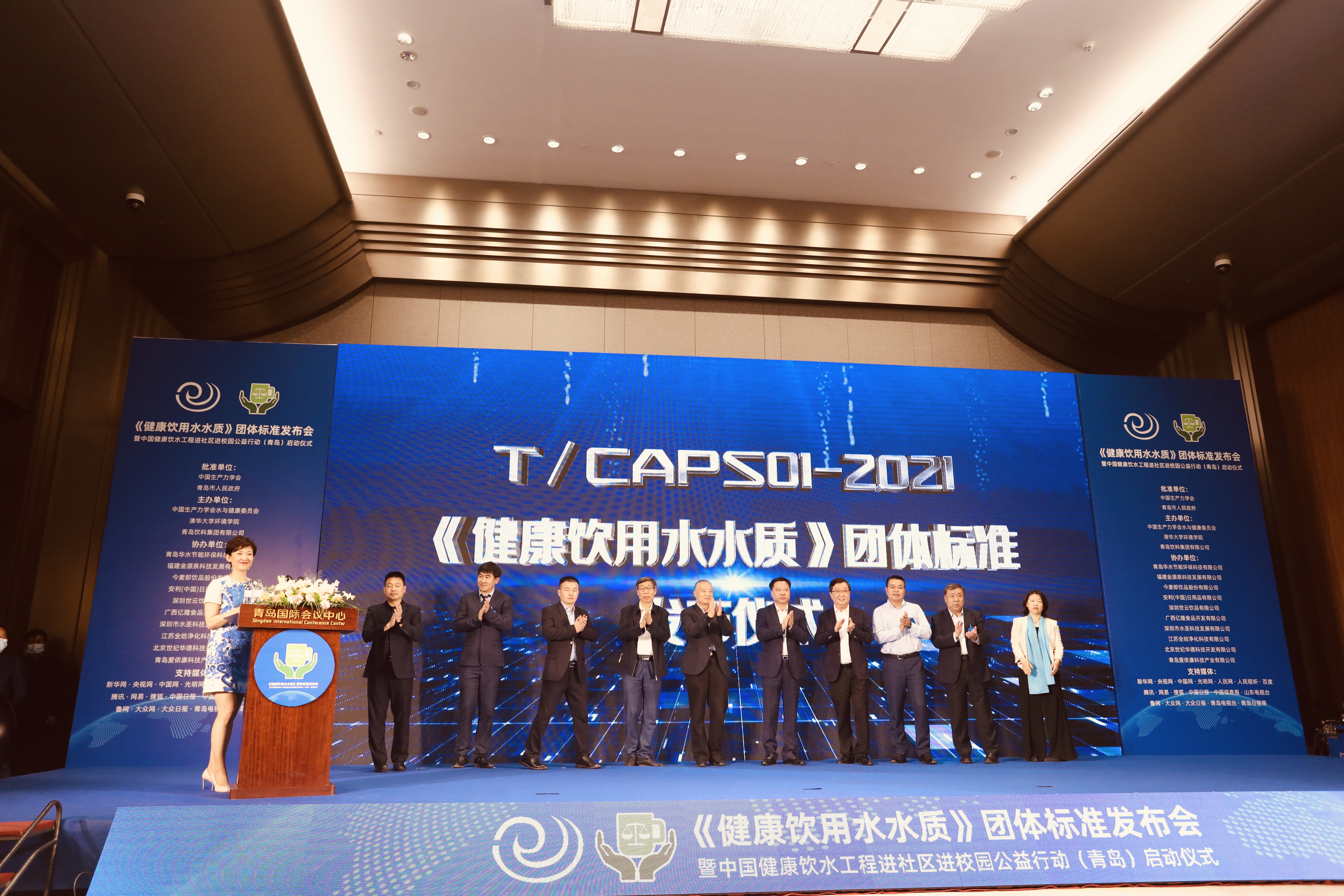 日前,由中国生产力学会、清华大学、青岛饮料集团有限公司联合主编的《健康饮用水水质》团体标准于4月18日在北京审定通过。为深入贯彻习近平总书记对守护国家水安全的重要指示和党中央国务院“健康中国2030”的战略规划,全面推进健康中国建设,以此为契机,今天上午,由上述三方联合主办的《健康饮用水水质》团体标准发布会暨中国健康饮水工程进社区进校园公益行动(青岛)启动仪式在青举行。饮水安全事关战略全局、事关长远发展、事关人民福祉。制定健康饮用水水质标准、提高健康饮用水水质、普及健康饮水知识,是以人民为中心的执政理念的具体体现。