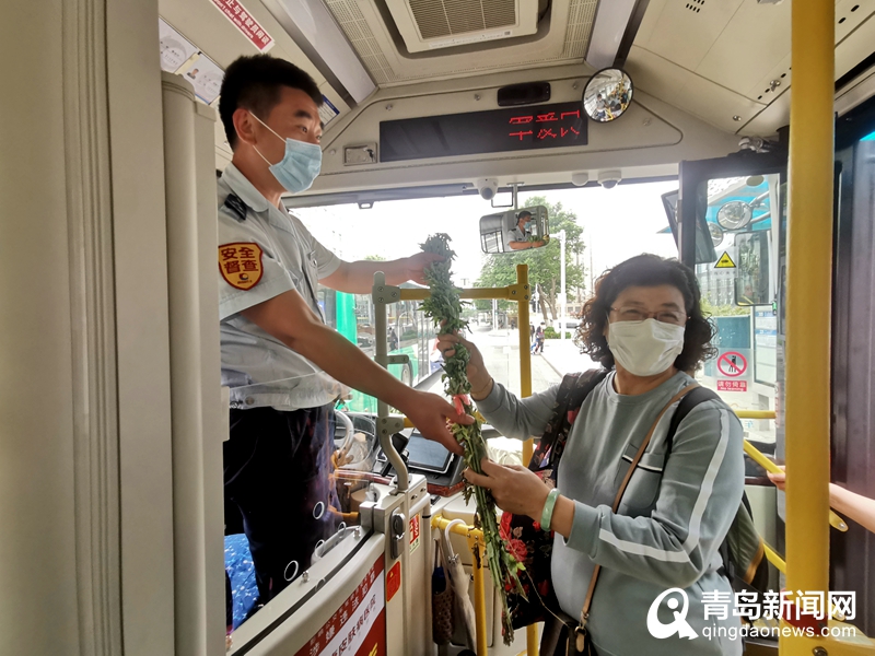 青岛新闻网6月12日讯(通讯员 衣彦飞)“您好,欢迎乘车,端午节快到了,送您一捆艾草!”6月12日上午,在一辆304路公交车上,乘客张女士刚一上车,就收到了驾驶员赠送的艾草。为弘扬传统文化,普及端午习俗,青岛城运控股公交集团隧道巴士公司304路线被打造成“端午民俗车”,车厢内张贴了端午民俗知识,并悬挂祈求健康的艾蒿,乘客上车更可获赠艾草,车厢洋溢着浓厚的传统节日氛围,而这份艾草的背后,是一份善意的温暖传递。