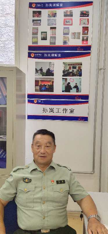 退休不褪色。我退休前在总参谋部任副师职政委,退休后本应在家享受天伦之乐,但我没有沉潜、军魂犹存。在担任社区志愿者中,时常目睹有的因家庭财产分配、邻里之间发生的一些小事吵闹纠纷,影响了社区的安定环境,在周边也造成了不良影响。当街道、社区领导获悉我在部队多年从事思想政治工作,找我担任社区民政义务调解员时,我二话没说。我在处理好几件棘手纠纷事件后,社区专门为我腾出一间“孙岚调解工作室。”“上级的信任和支持,是我做好民政调解工作的动力。”我把“人民调解为人民”当作自己的座右铭,努力践行着我为党增添光彩,为和谐社会奉献义务的诺言,诠释了习近平总书记所指出的,“基础不牢,地动山摇。”家是最小国,国是千万家的理念。我一心一意倾注到调解工作中。为了把民政调解这一神圣又平凡的工作做好,我认真对待每一次调解都当作一次法律法规的宣传。我在调解中也曾受过指责和谩骂过,但我从不计较,始终没有动摇过继续做好民政调解工作的信心。我像法律工作者一样,有着浓厚的使命感。学深悟透《民法通则》、《婚姻法》、《继承法》、《物业管理法》等文件。还学习了心理学和社会学等相关书籍,为调解好知识储备打下了良好基础,在调解中愈发灵活智慧。
