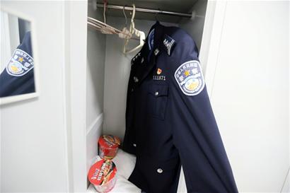 衣柜里还有两桶未开封的方便面,李涌警号111871的警服整齐地挂在衣柜里。办公桌上有一个两升装的塑料瓶子,以及两个熟鸡蛋。指导员赵永杰说,每次外出巡逻,李涌都要装上满满一瓶子水,深夜食堂不开,鸡蛋和方便面原本是等着巡逻结束后吃的。