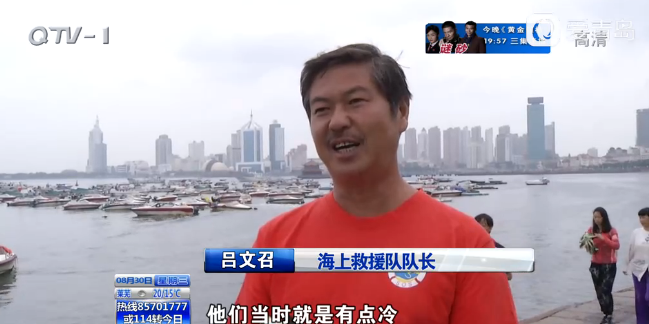 我印象比较深的一次救援是2017年8月份,一名女子在栈桥景区礁石上涨潮被困遇险,我们到达现场后,一名女子因为感情问题有了轻生的想法,于是我和现场民警耐心劝说,分散其注意力,另一名队员看准时机跳入水中,将女子带上摩托艇,救援行动成功,后来得知遇险人员是一名在校大学生,因为我们及时的救援避免了一场悲剧的发生,当时风浪比较大,我们的队员的手和脚被海砺子皮割伤了,这不算什么,能够挽救生命是最重要的。