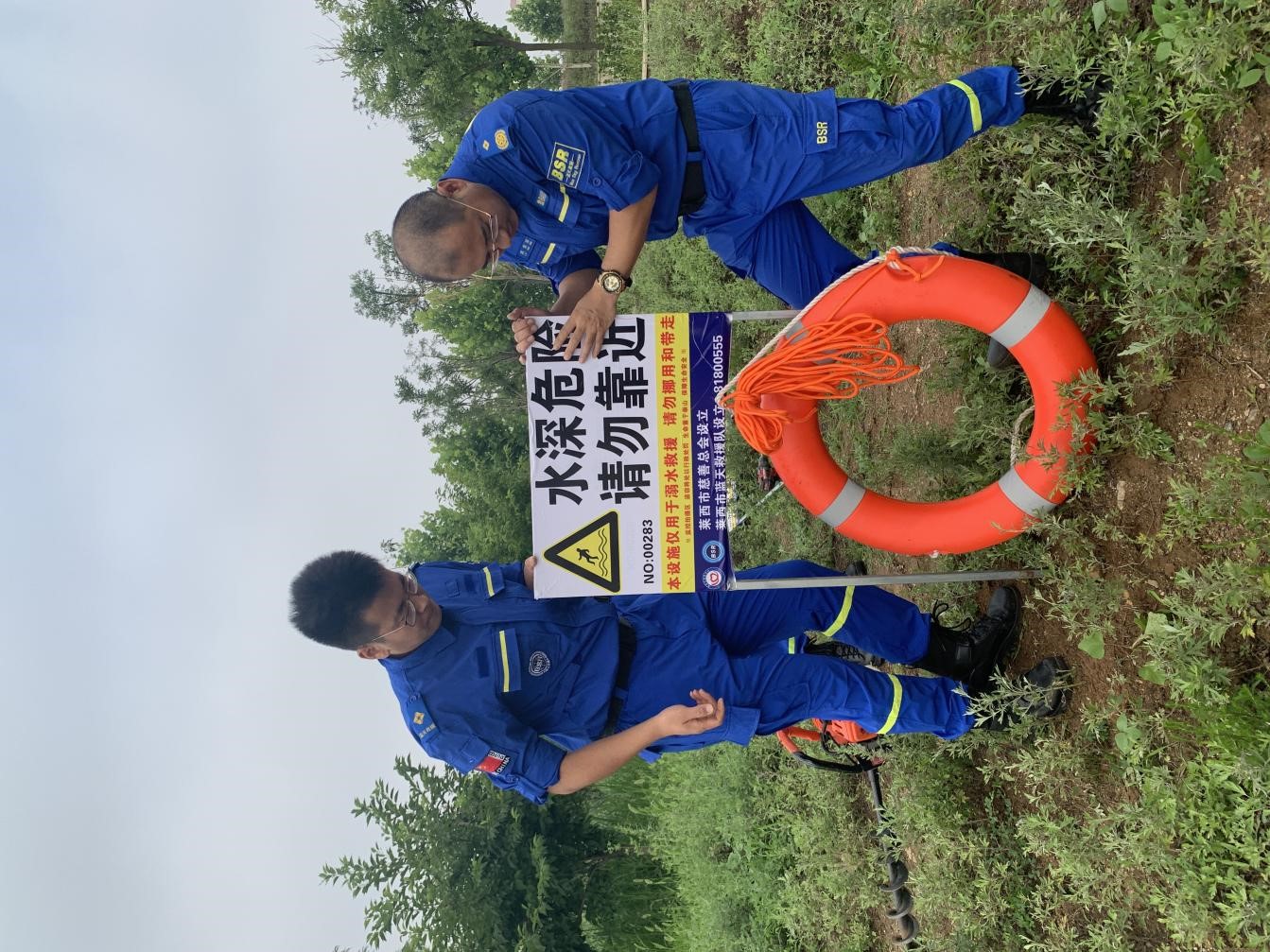 2020年6月,面对暑期将至,学生防溺水问题突出的形势,一方面组织队员到各学校进行防溺水宣传、培训,另一方面号召爱心企业、爱心人士积极参与到开放水域救援设施设置项目,在莱西各处安装水域救援设施,为防溺水、保安全作出了积极贡献。