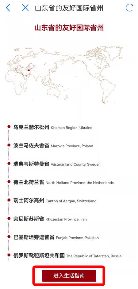为帮助外籍人士更好地适应并融入在鲁生活,山东省委外办依托省移动政务服务总门户——“爱山东”移动端,上线《外籍人士在鲁工作生活服务指南》,给外籍人士以家的温暖。外籍人士可使用“爱山东”APP、微信小程序或支付宝小程序,首页搜索“外籍人士在鲁工作生活服务指南”,点击打开即可使用!