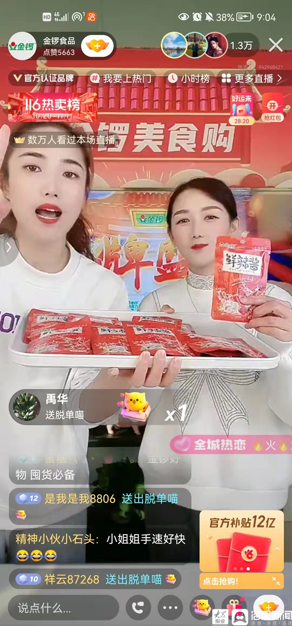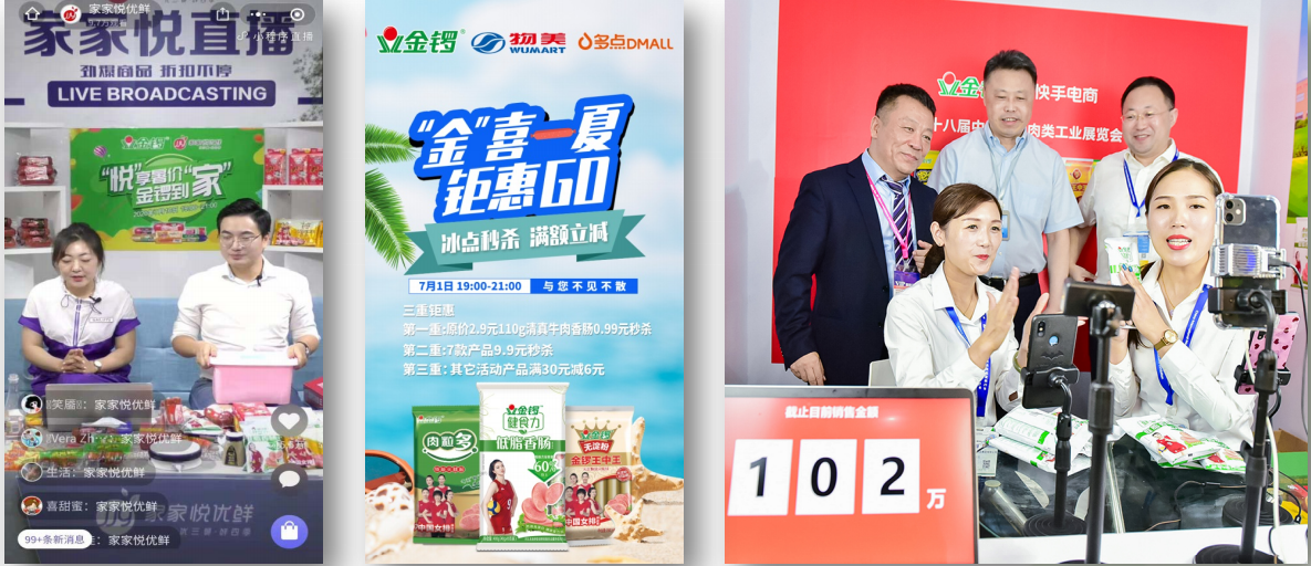 活动期间,金锣电商日均销售100万元以上,已在各电商平台累计销售超1000万元。此外,活动期间,快手平台金锣场单场销售额达到111万元,观看人数89万,全天位于快手品牌榜第一名,天猫、京东等店铺位于行业前列,成绩斐然。