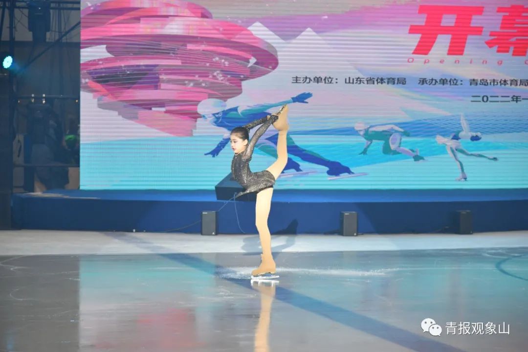 点冰跳、刀刃跳、空中旋转……“冰雪节”开幕式上,来自市南区的孩子们体态灵动、技法娴熟,精彩的花滑表演令人赞叹不已。
