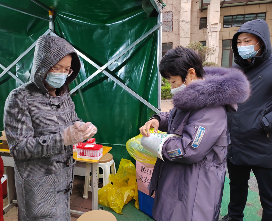 自2021年代管东城社区之后,廉秀娟东田、东城两头跑,这几天更是一直靠在一线,处理大小事宜。全员核酸检测期间,既要保证辖区居民“应检尽检”,又要在有一定聚集的时候,保证居民安全。廉秀娟和同事几天前就开始忙活,搭建棚子、划分安全间隔、通知居民、清点物资、现场一遍遍维持秩序、摸排重点人员、站岗维稳……“昨晚两三点钟才回家,今早上七点多就又到社区了”。据悉,昨天夜里社区有几个重点人员需要被隔离,廉秀娟按个打电话通知,安抚给他们的情绪,同时让他们早点收拾好行李。怕出纰漏,廉秀娟一直等到夜里两三点钟,亲眼看见转运车把重点人员接走才安心。
