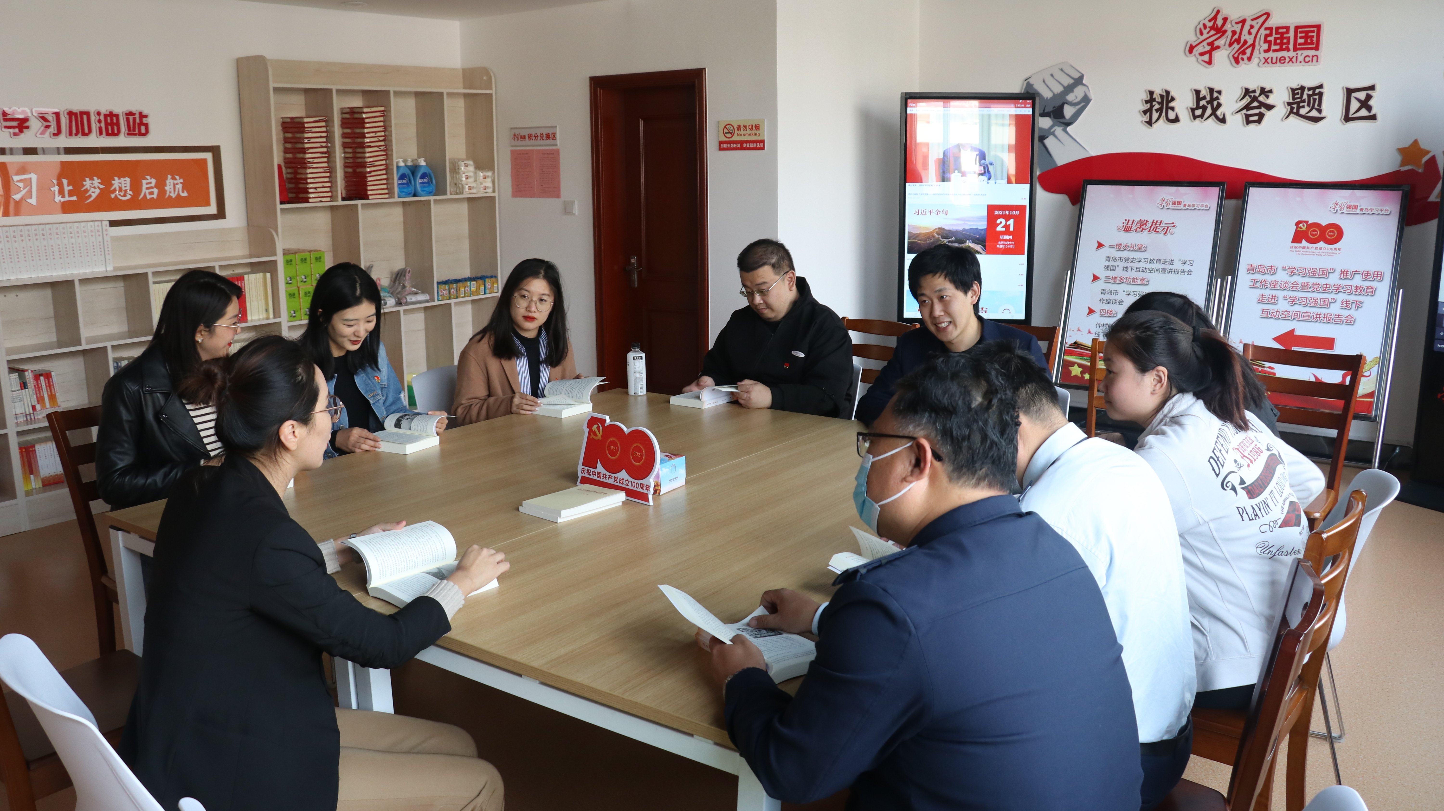 仲村社区党委将“学习强国”平台推广与社区实践活动相结合,打造了一支“学习强国”宣讲推广队伍,充分利用“学习强国”学习平台线上板块的优质学习资源,定期在社区“学习强国”线下互动空间组织党员群众开展党史学习教育、青年大学习、读书分享、知识竞赛、座谈、积分兑换等活动。学员们可以在这里借阅书籍、观看红色经典影像、听党史故事、挑战PK赛……多元化拓宽党员群众学习渠道,满足社区广大学员学习需求。三年来,累计在“学习强国”线下互动空间开展活动540余次,承接参观学习38余次,多次承办市级“学习强国”线下互动空间宣讲报告会、青岛市党史学习教育走进“学习强国”线下互动空间宣讲报告会等大型活动,线下积分奖励兑换6次,累计兑换1000余人次,真正使“学习强国”学习平台深入到居民群众的生活中来,让知识从“云端”延伸到“身边”。