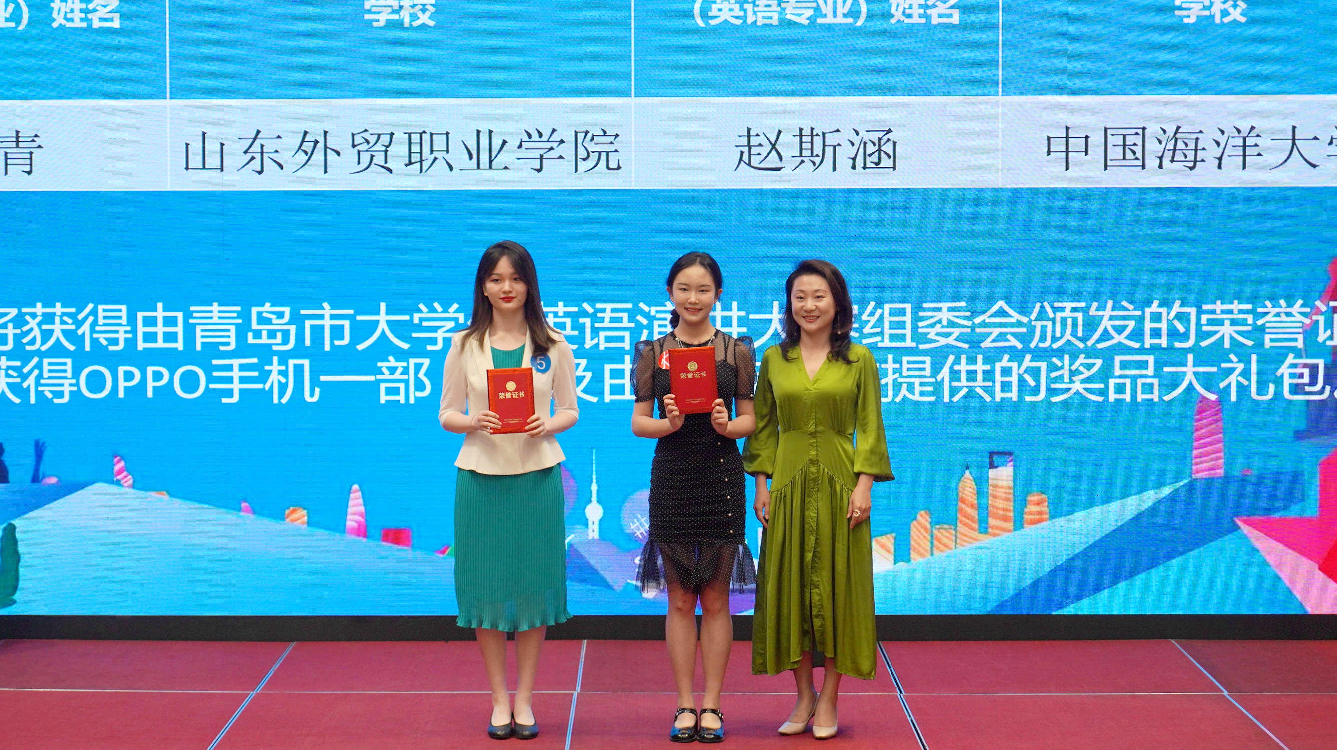 比赛现场,来自16所高校的优秀选手围绕题目《Youth Shines in Responsibility 有责任有担当 青春才会闪光》,结合自己的人生理想和职业规划展开主题演讲,选手们妙语连珠、风采尽现,博得了现场评委和嘉宾的阵阵掌声,展现了当代大学生的责任担当和精神风貌。经过激烈的角逐,最终,获奖名单新鲜出炉,现场举行了颁奖仪式。至此,“聆听世界 感知青岛”—“成功杯”青岛市大学生英语演讲大赛圆满落下帷幕,直播平台线上浏览量超39万人次。
