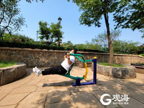 步入仿古建筑组群的北大门,“九龙吐水”影壁,上书《黄岛赋》,前景增设叠水、喷泉景观,静观流水叠瀑,古香古色的韵味引得市民驻足观赏。“家距离公园也就两三百米,每天晚饭后都有散步的习惯,封闭施工期间还有点不适应,就盼着早点重新开放。”黄岛街道刘公岛社区居民陈文祥告诉记者,之前园内路面破损,环境卫生也不太好,各种娱乐健身器械也生锈残缺,改造后焕然一新。
