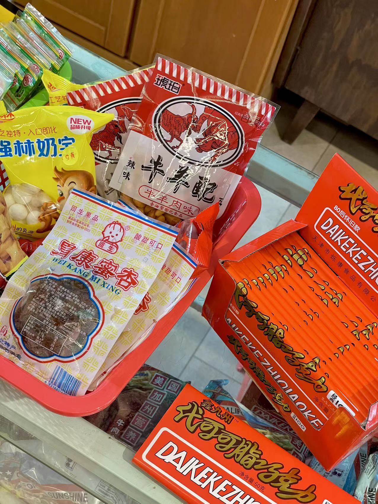 复刻版的市集摊位,铁锈斑斑的三轮车,营造出一种老城烟火的氛围。充满年代感的毛巾、背心,和八九十年代的娱乐杂志,瞬间把回忆拉满,这些曾经占据娱乐圈半边天的明星,当年可都是人们喜闻乐见的“大腕”。很多90、00后的小伙伴都没见过的零食,这些逐渐淡出人们视线的东西,或许只能成为80后的小确幸了。