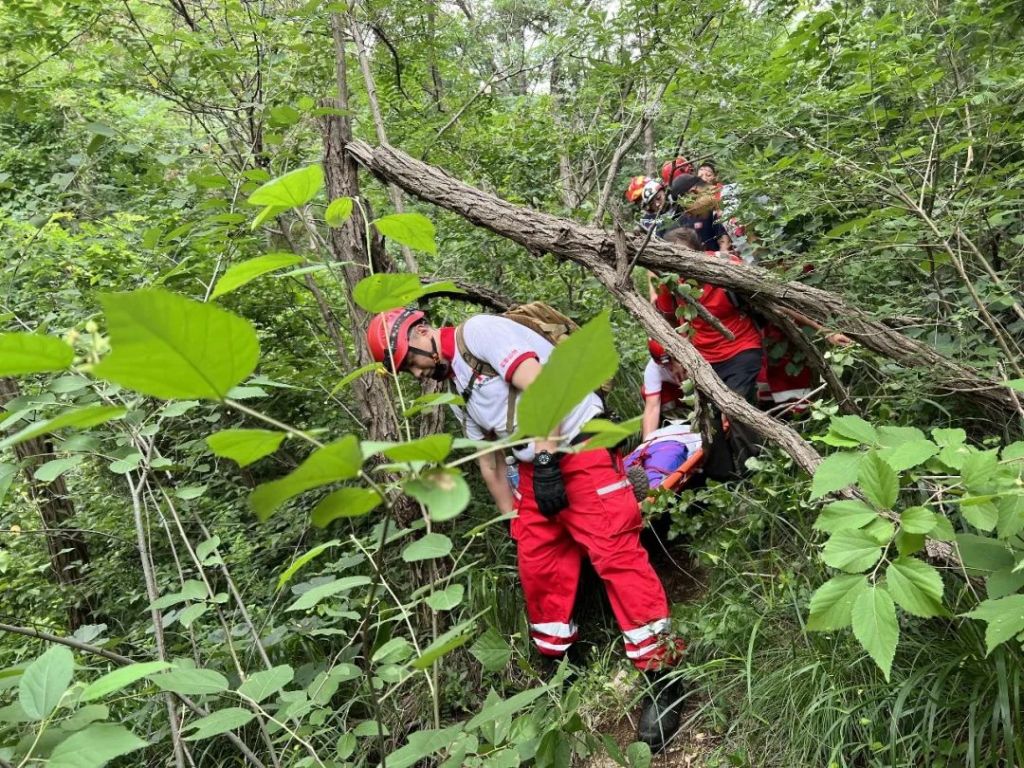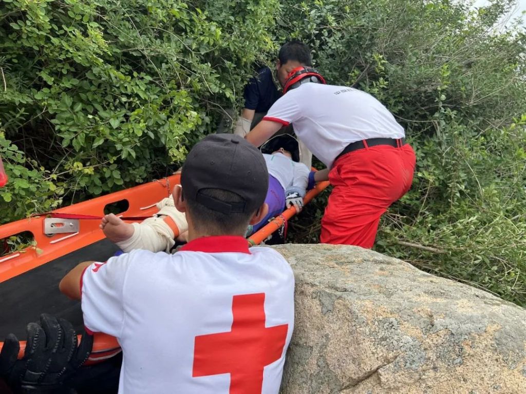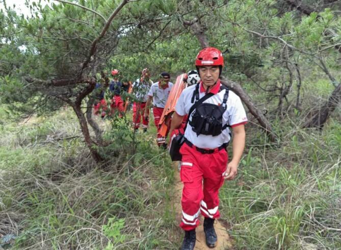 2022年7月3日上午10时16分,平度红十字蓝天救援中心接驴友电话求救,老龙湾风景区裕风顶附近有人受伤急需救援,救援队快速启动应急响应机制,携带医疗装备、绳索、担架等山地救援装备向事发区域集结。当天上午11时7分,救援队员到达老龙湾,指挥部现场研判首先出动无人机迅速锁定伤者位置并引导队员登山,并根据现场情况下达第二梯队结集指令。