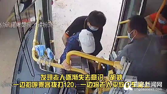 这一幕发生在6月14日下午3点54分。“当时正下着大雨,我驾车行驶到青岛三十九中站点时,看到两位打着伞的老人正在旁边一辆货车底下躲雨。”胡波说,两位老人见她开车停靠后,赶紧起身准备乘车。“有一位老人先上车了,可等另一位老人准备拉着小车上车时,突然摔倒了。”胡波看到后,也顾不上还下着大雨,赶紧冲下车抱起老人往车内走。等两人顺利上车后,胡波发现老人逐渐失去了意识。她一边呼喊车厢内的乘客拨打120急救电话,一边将老人平放在车厢上。接着,胡波和车内乘客对老人采取了紧急救助,有人帮着掐人中、有人忙着为他擦雨水、有人为其按摩……没一会儿,老人恢复了意识。