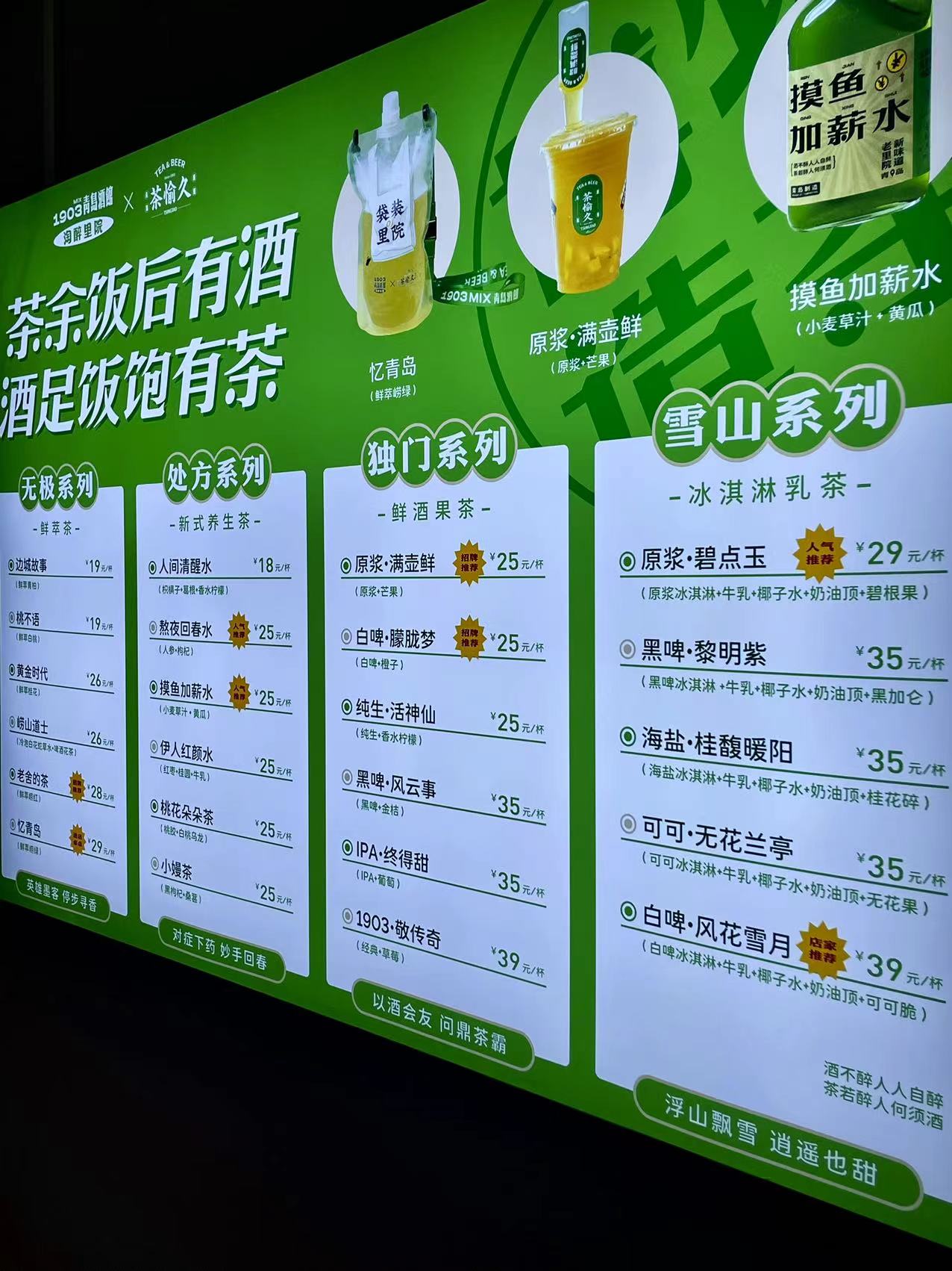 进来就被饮品区的五颜六色吸引了。“茶余饭后有酒、酒足饭饱有茶”,无极系列、处方系列、独门系列、雪山系列四大类饮品,无论包装和口感都不错。推荐尝尝独门系列的原浆满壶鲜,是搭配啤酒的芒果饮品,不过价格也有点点高。各种口味的啤酒也都有,在秋老虎造访的夏末来一杯,冰爽过瘾。