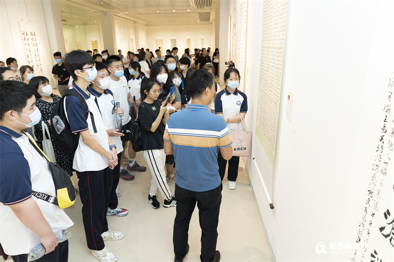 据了解,本次展览将持续至8月17日,部分参展作者代表,青岛书法界人士以及媒体记者200余人参加开幕式并参观展览。