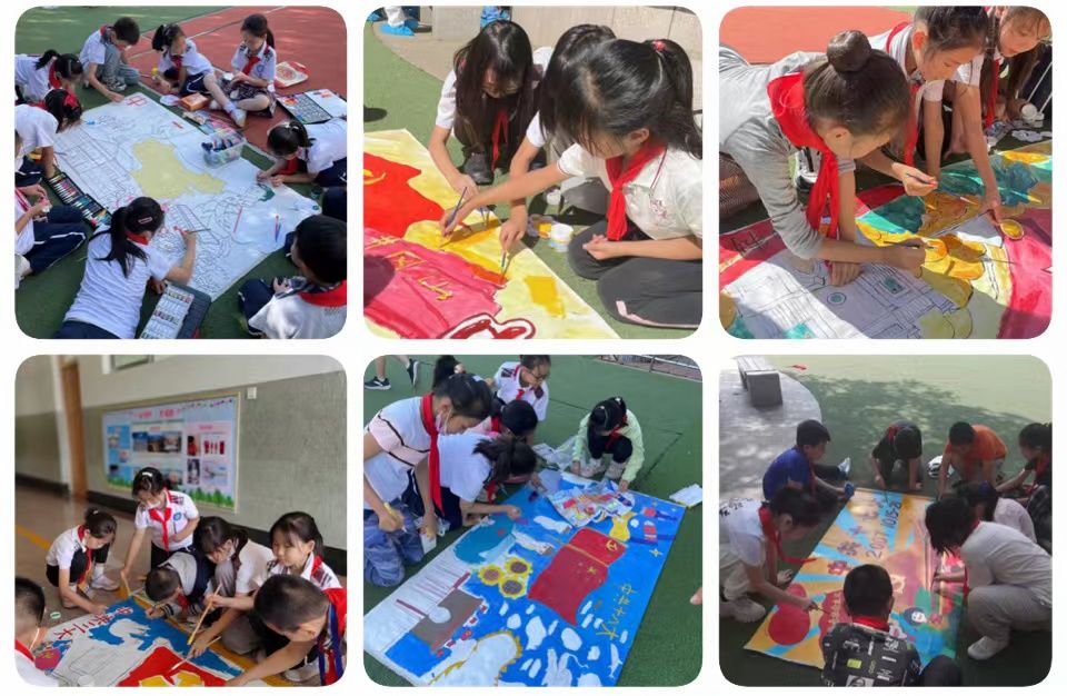 红色照亮征程,祖国伴我成长。在中华人民共和国成立73周年之际,为了引导青少年儿童树立正确的理想信念,培育和践行社会主义核心价值观,重温中国共产党的发展历史。青岛市实验围绕“喜迎国庆节重温革命路”为主题开展了迎国庆绘百米画卷活动。