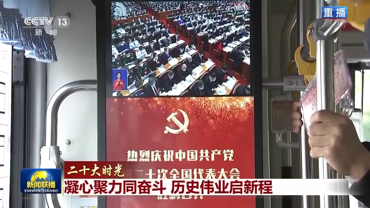 在辽宁大连,60多条公交线路通过车载电视,向市民同步转播党的二十大开幕会盛况。在甘肃兰州东方红广场、在重庆人民解放纪念碑广场,人们通过户外大屏收看直播。在长三角生态绿色一体化发展示范区、在横琴粤澳深度合作区,大家集中观看大会盛况。