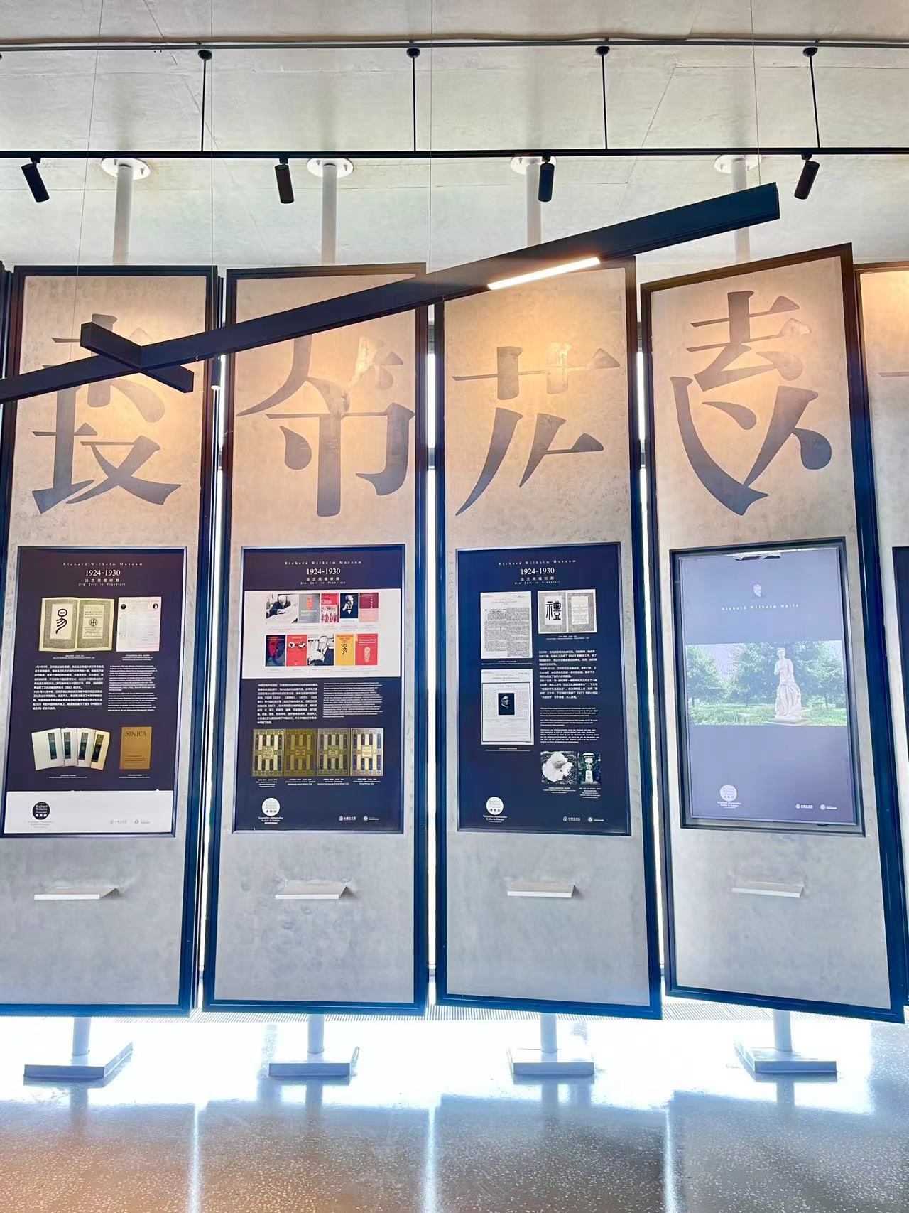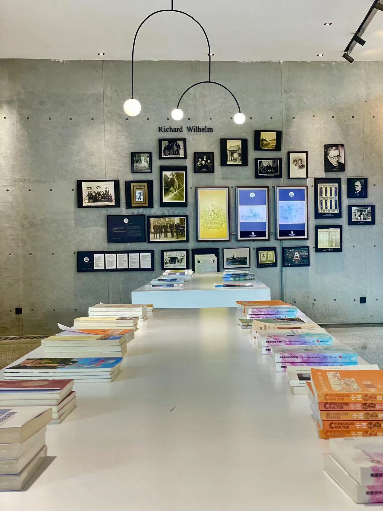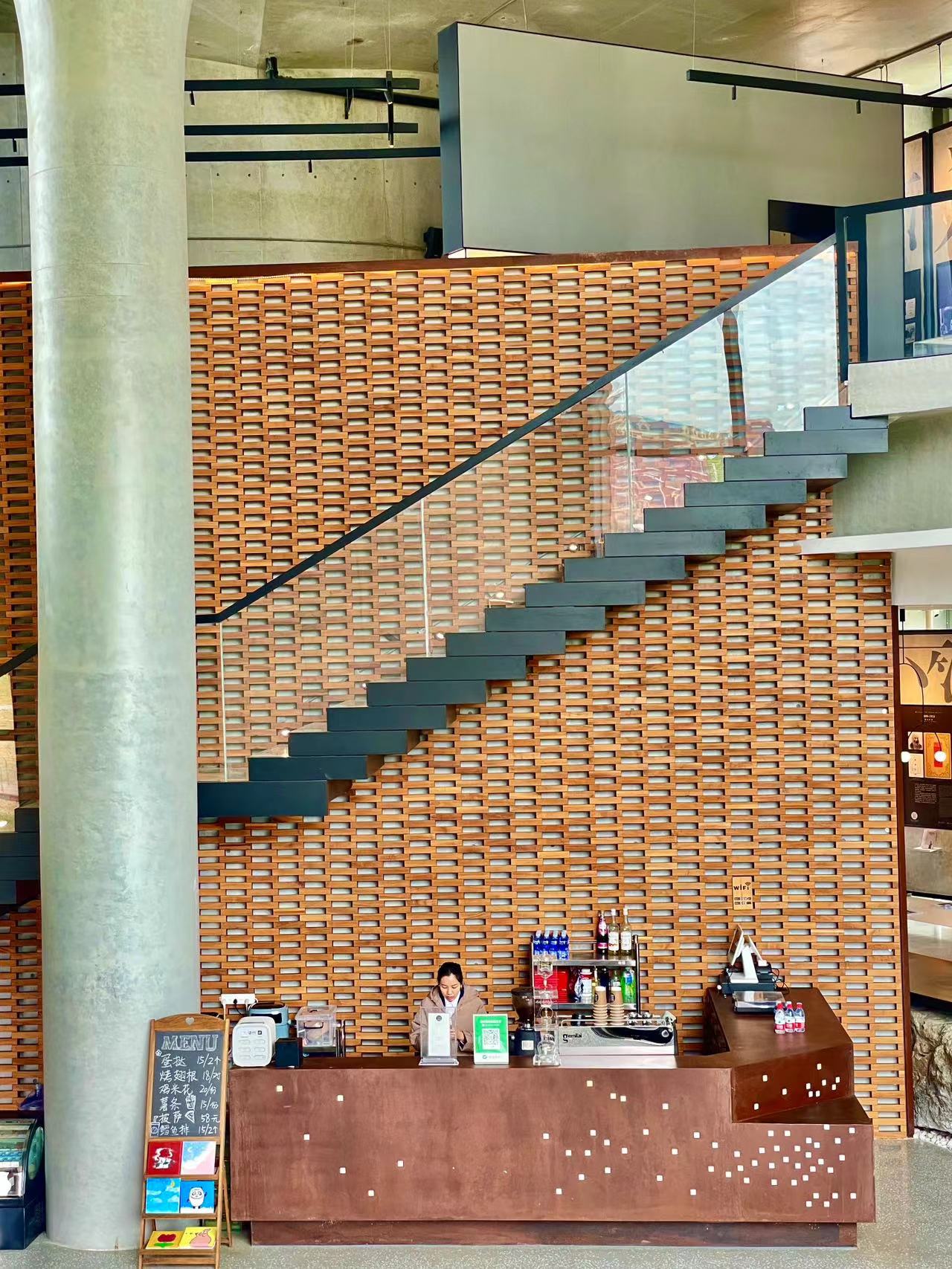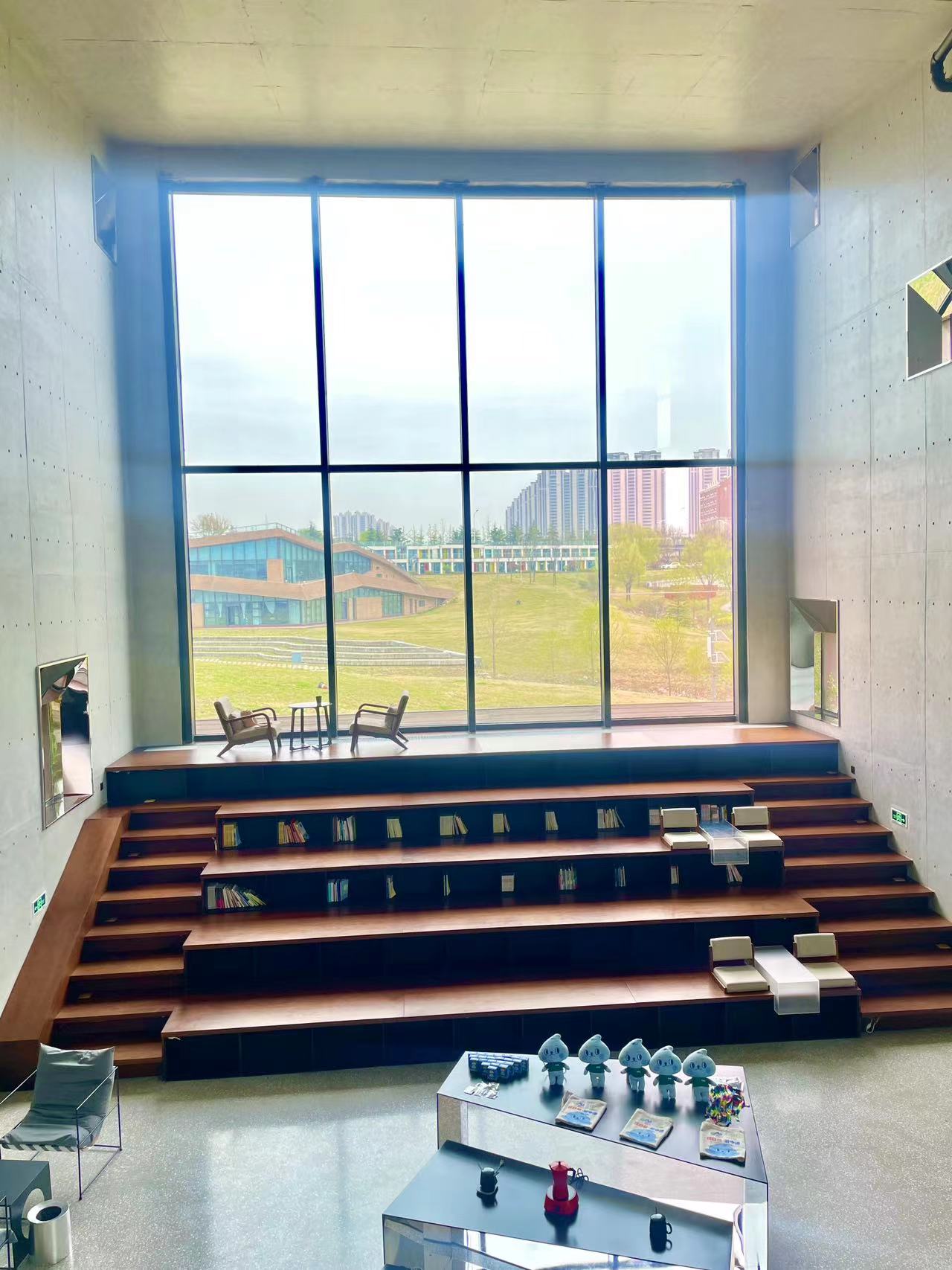 整个场馆共两层,开放时间是9:00-17:00,一层有超大的落地玻璃窗,木质阶梯,还有文化展览墙,名人画像、文化展板、各种书籍等等,不但可以浸润中外文化,拍照也特别出片。