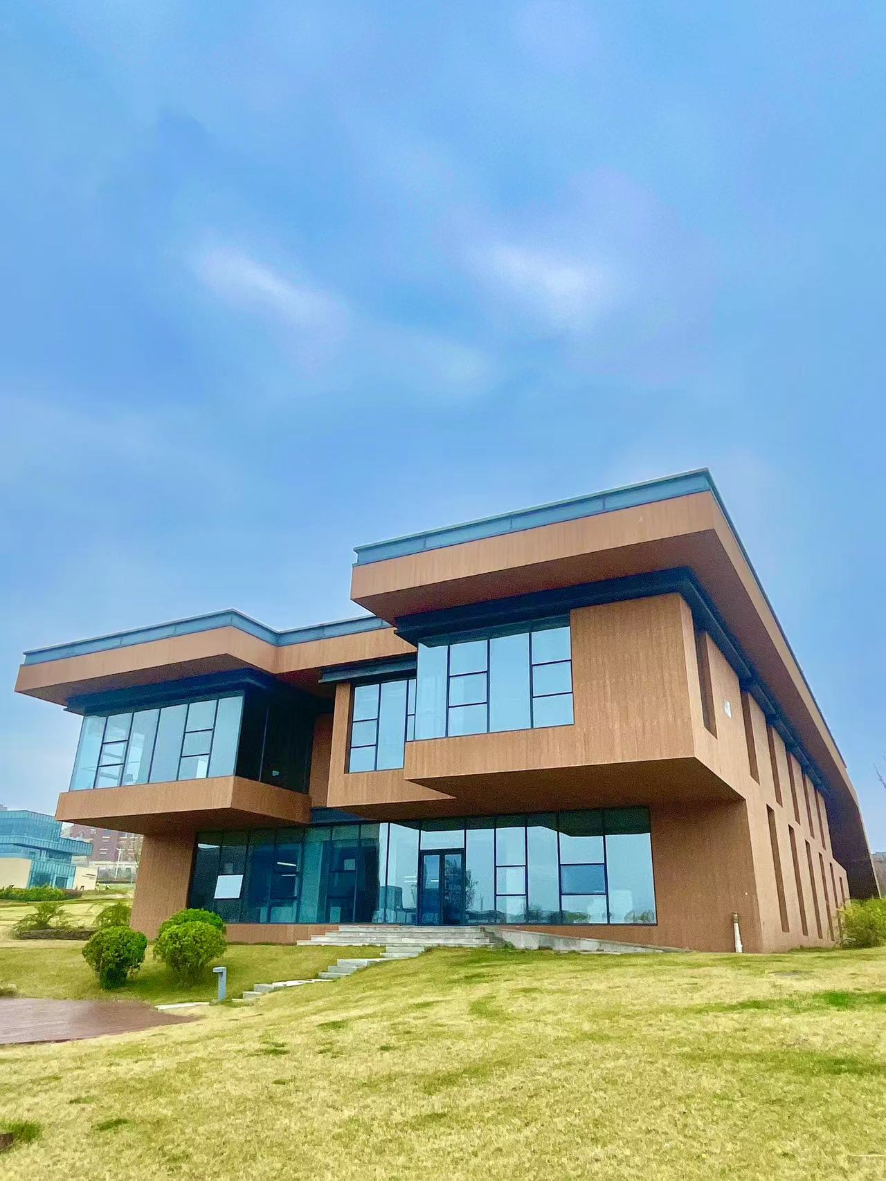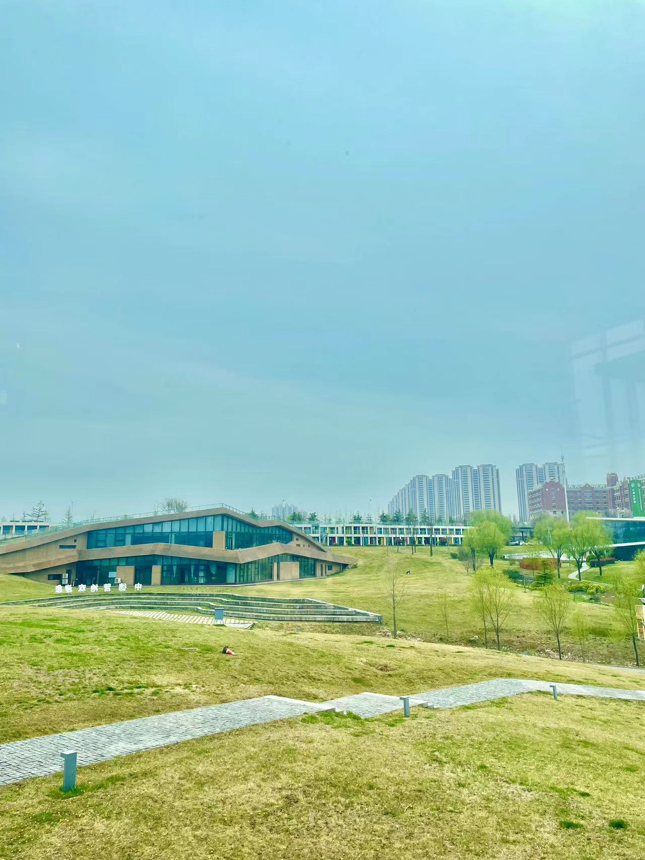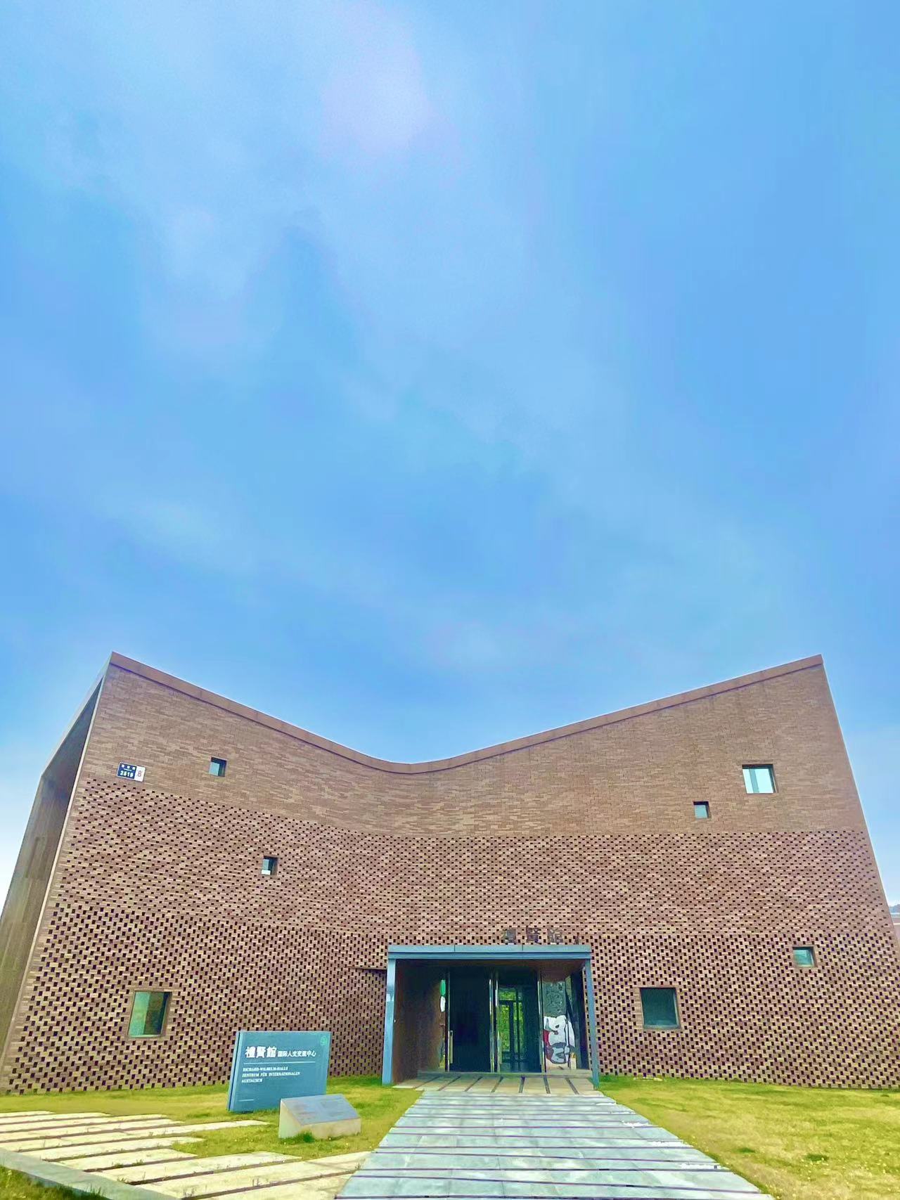 位于团结路上的中德生态园,就在西海岸新区九中新校区的对面,里面虽然有部分场馆尚未对外开放,但整体园区是开放的,还有免费的停车位。放眼望去,整个园区绿意满满,大面积的草坪让人心旷神怡,造型独特的各个场馆坐落其中,还有种艺术园区的感觉。
