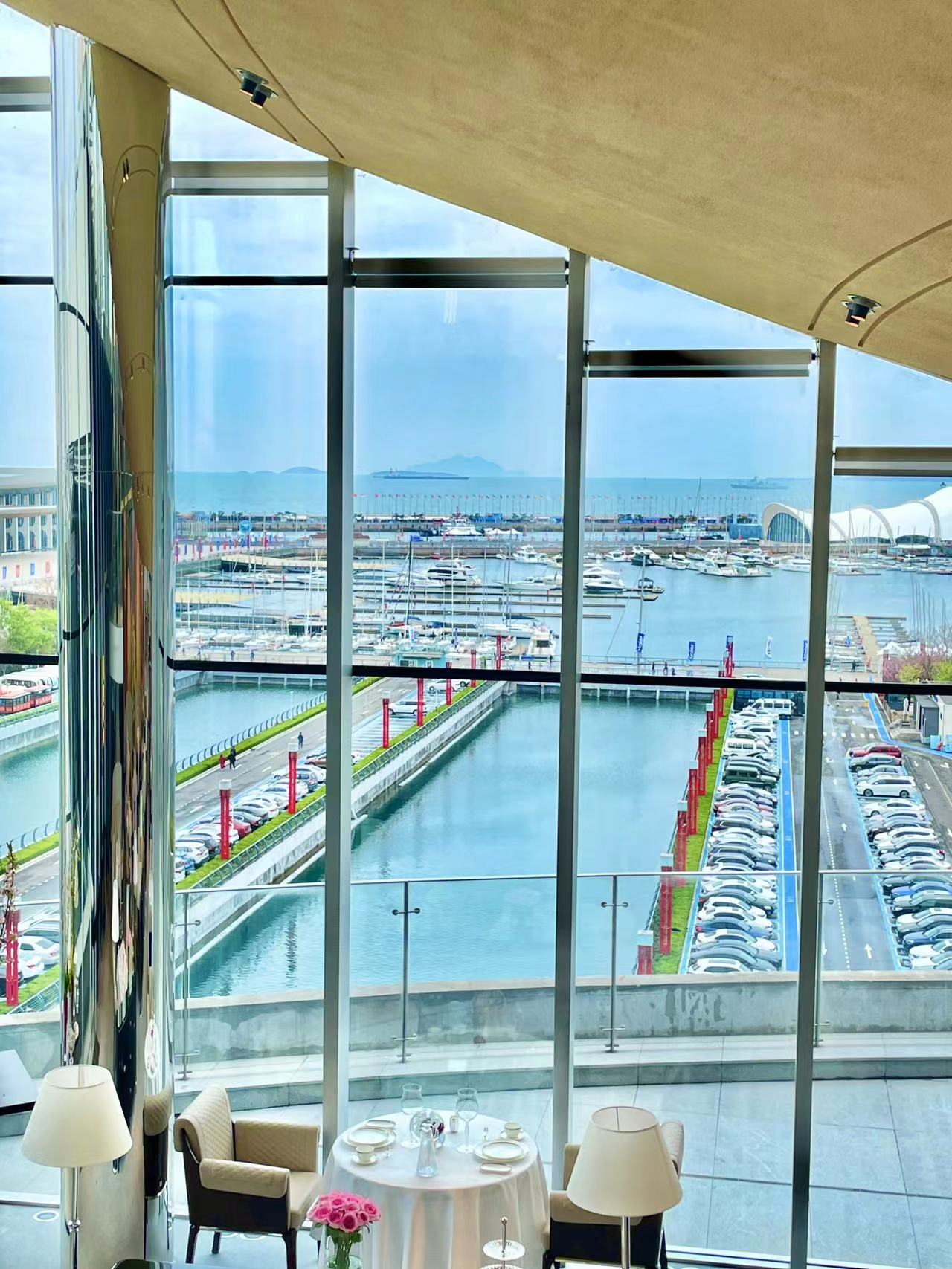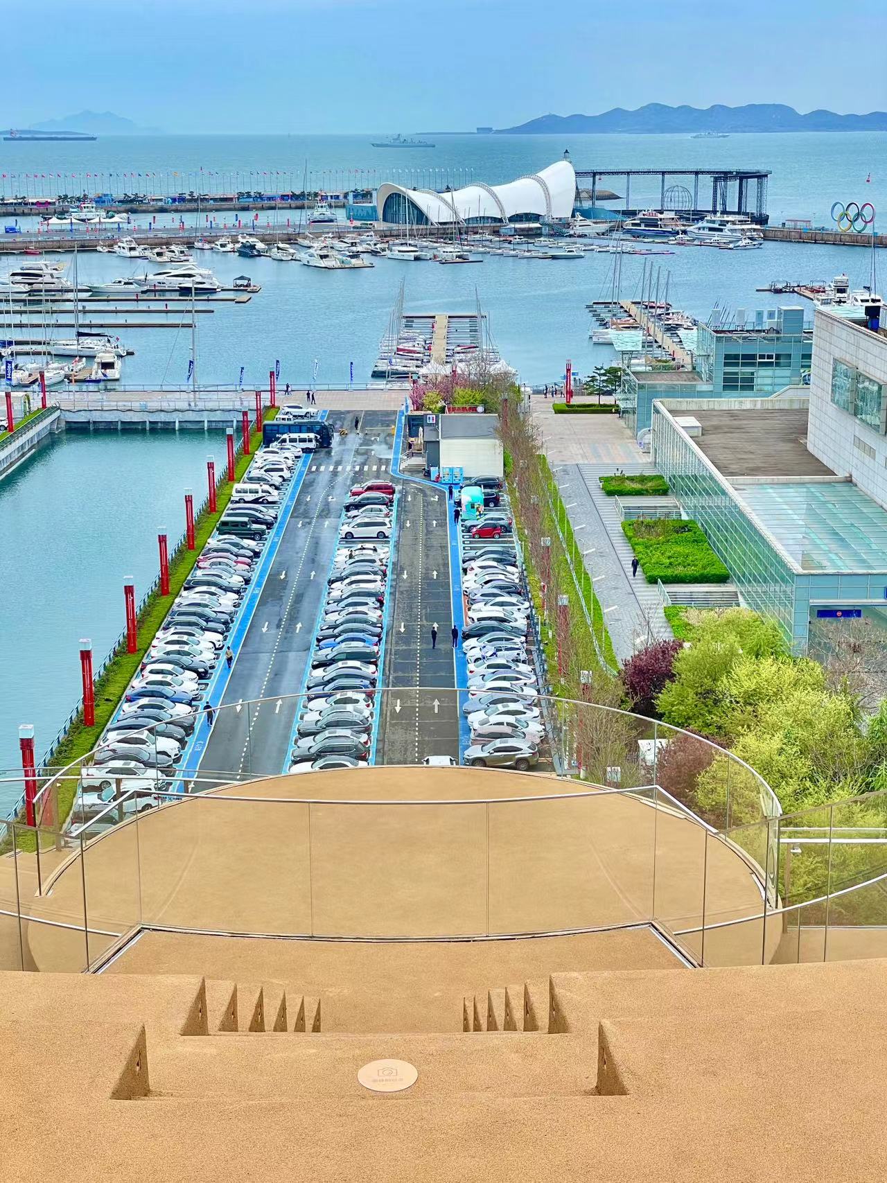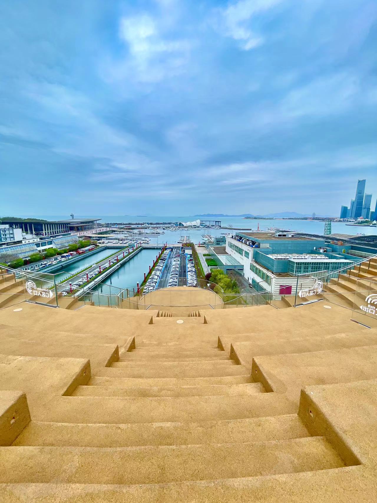 sky bowl入口在海信广场五层人间采蜜餐厅旁边,进入后有楼梯通往户外区域。推荐大家一定一定一定要去看看,站在五楼户外楼梯顶层,视线太好了,奥帆海岸线景观一览无余,视觉效果相当震撼😍拍照也是绝绝子的好看📷提醒一下恐高的uu们,上旋转楼梯时贴着内侧走,不然还真有点小害怕。