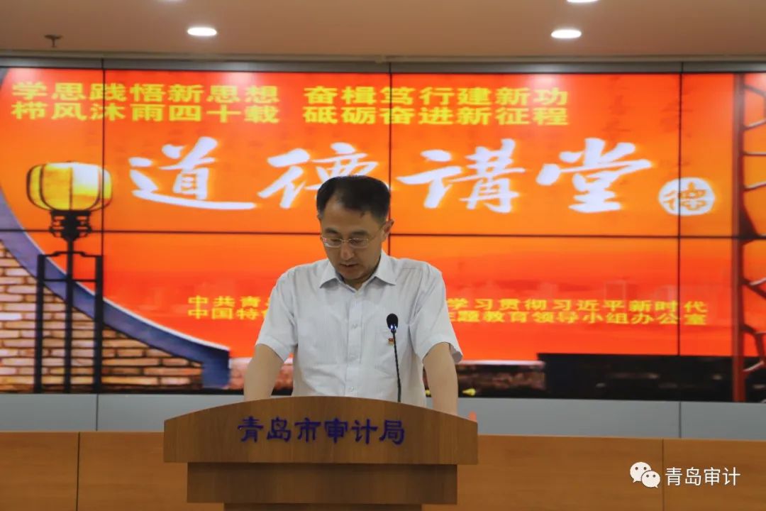为庆祝中国共产党成立102周年,深入推进学习贯彻习近平新时代中国特色社会主义思想主题教育,切实做到以学铸魂、以学增智、以学正风、以学促干,激发广大审计干部在新时代审计事业中挺膺担当的干事激情,6月29日,青岛市审计局举办“学思想、强党性、重实践、建新功”主题道德讲堂。