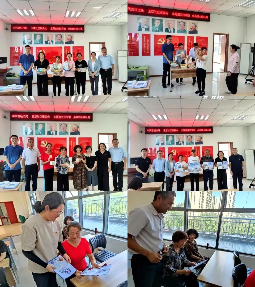 为深入推进党支部与社区结对共建,以实际行动践行为人民服务的宗旨。6月21日下午,市民营经济局11名党员志愿者到李沧区虎山街道玉堂社区开展“志愿服务靓党徽点亮群众微心愿”活动。前期社区收集了群众“微心愿”,市民营经济局主动接单、党员积极领单,为社区儿童送去各类儿童图书近百册,为群众提供扑克牌20余副,为企业发放政策一本通、初创企业指南、政策宣传单页、提供对口的政策解读及帮扶,通过共建活动,为社区党建工作开展注入新活力,共同创新“主题党日+”模式,帮助群众实现微愿望、放飞微梦想、提升幸福感。