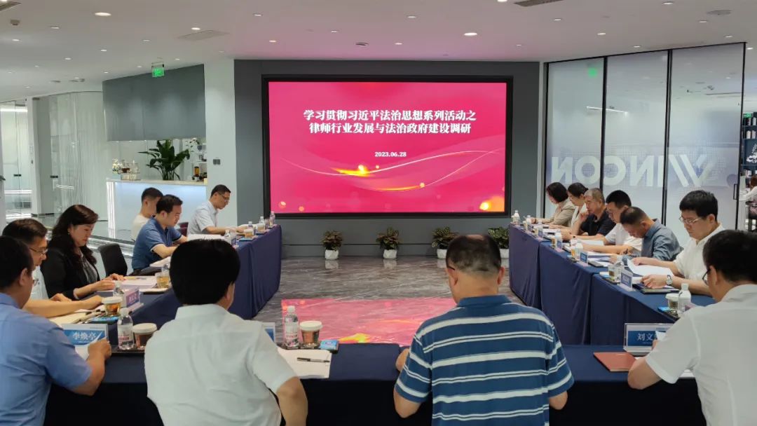 为贯彻落实习近平法治思想,市政协社会和法制委员会谋划了“贯彻落实习近平法治思想”系列活动。6月28日下午,市政协副主席刘光烨带领部分政协委员来到山东文康律师事务所,围绕“律师行业发展与法治政府建设”进行专题调研并召开座谈会。会议由市政协社会和法制工作办公室主任宋希民主持。与会人员围绕“如何不断推动我市律师行业发展再上新台阶,不断促进我市法治政府建设展现新面貌”,展开了深入的交流与讨论。