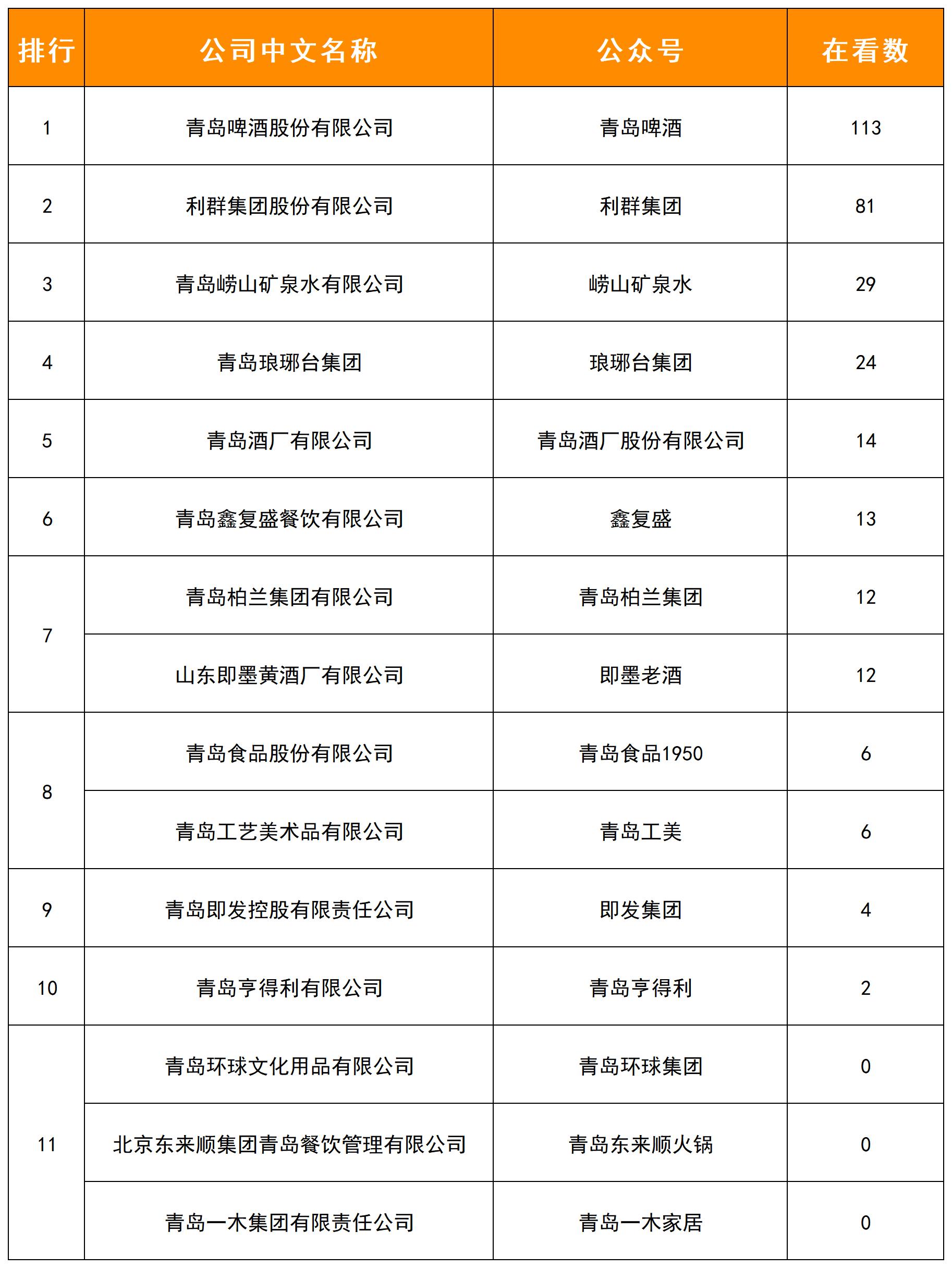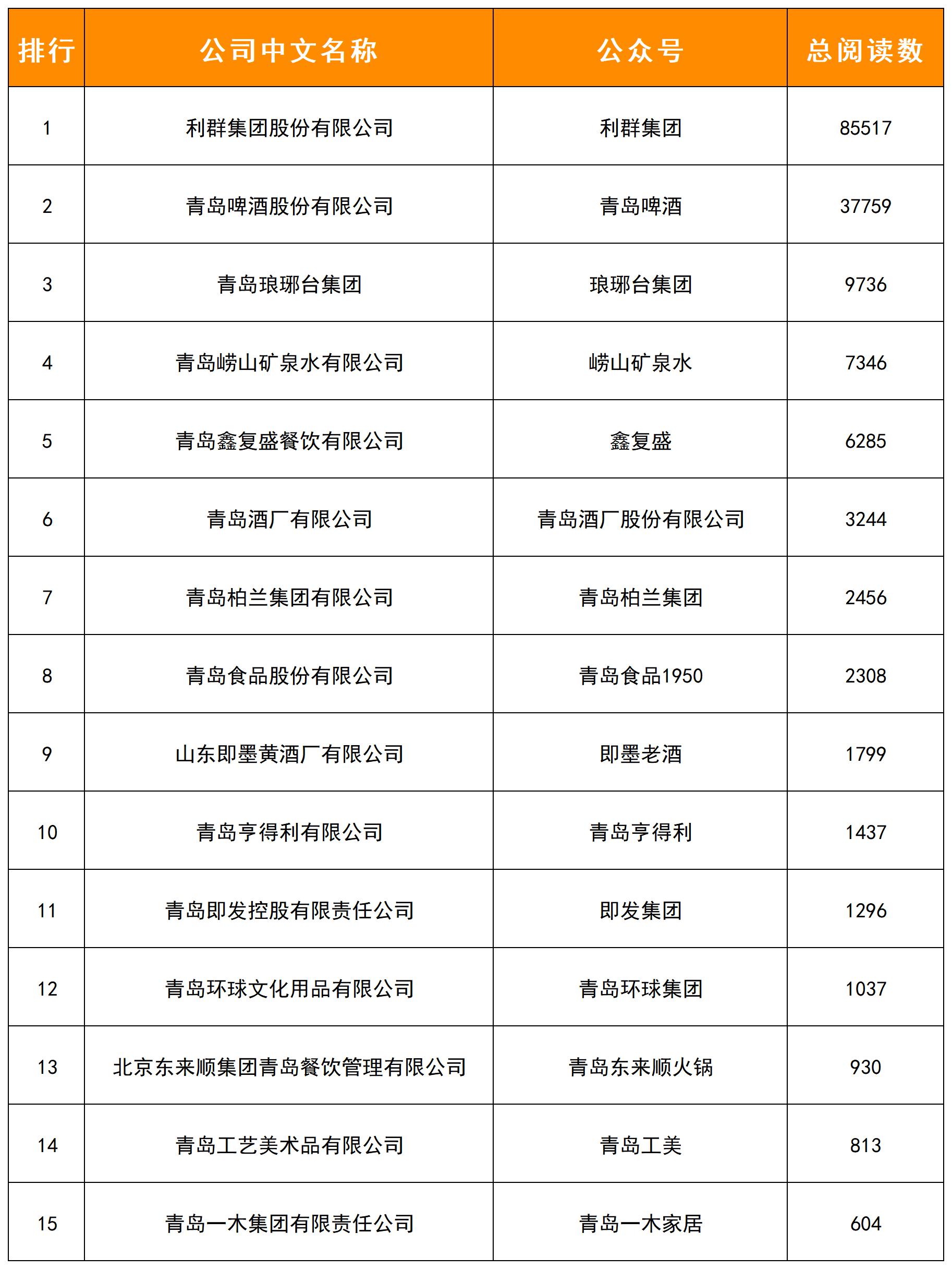 NO.1|权威发布:青岛老字号企业微信影响力月度排行榜TOP15