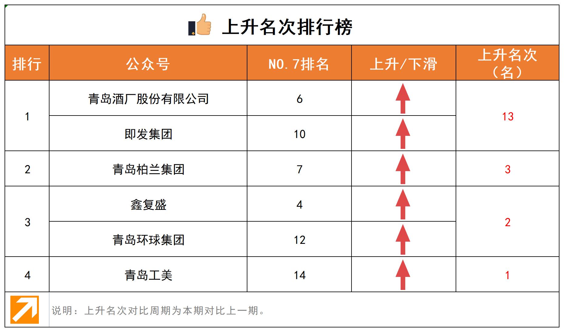 本期重回榜单账号:“青岛酒厂股份有限公司”、“即发集团”。