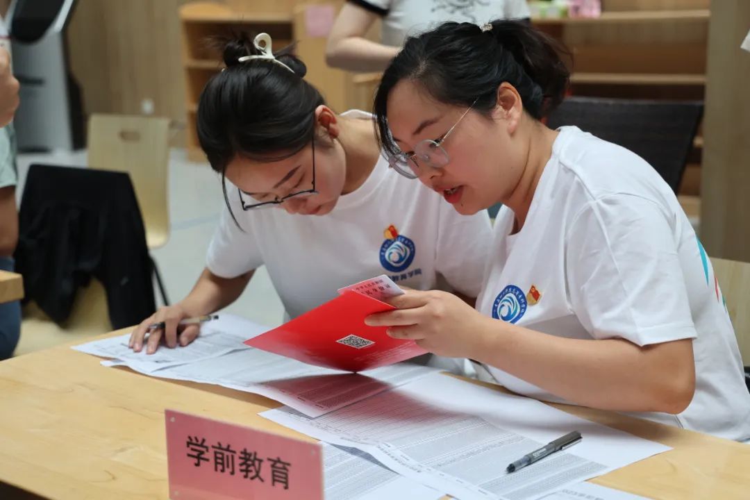 院系迎新更多元。学前教育学院组建了教师党员先锋服务队,以精彩的打击乐演奏、优秀的美术作品、精彩纷呈的艺术盛宴等热情迎接;商贸学院专人专岗迎新流程,精心准备了“许愿树”留存微心愿,还为学生发放了独具商贸特色的书包;珠宝学院立德树人、德技并修,让新生们在奔赴新征程的路上熠熠生光;信息学院一张张热情的笑脸、一句句亲切的问候、一项项贴心的服务以心迎新;文旅系、体育教育系开展一对一精准服务,诚挚欢迎新生报到,寄语新学期和新梦想。