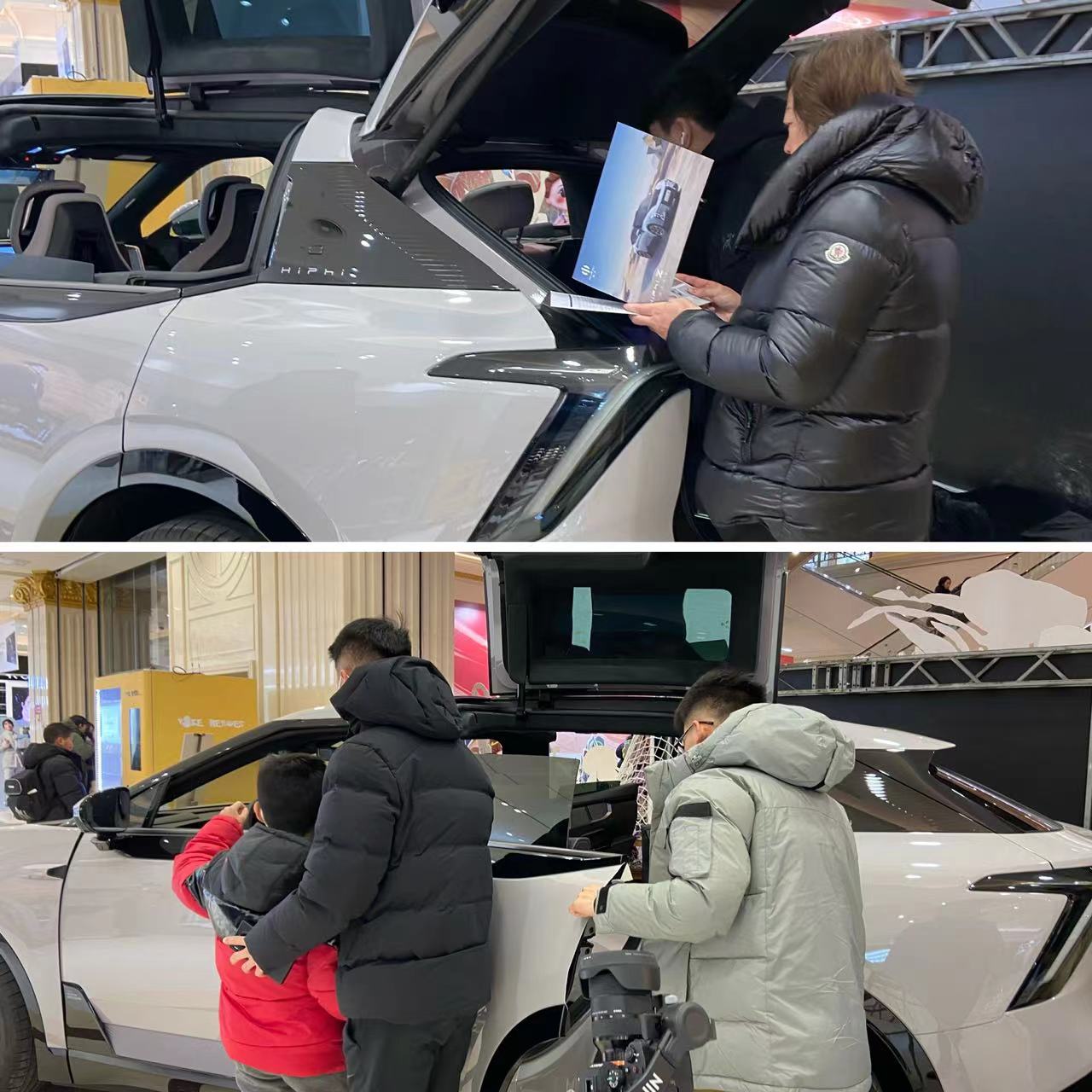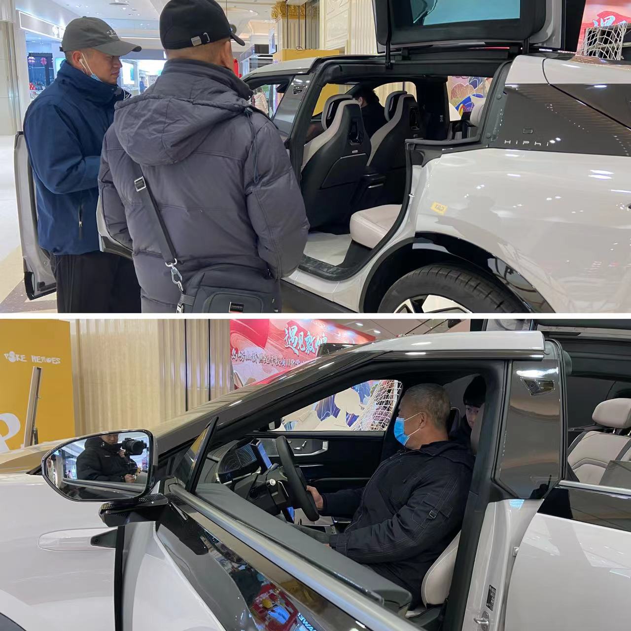 恰逢周末,利群金鼎广场人流熙熙攘攘,而拥有无与伦比智能科技实力的高合汽车HiPhi Y,则吸引了市民的极大关注。其科技未来的炫酷外观、翩翩起舞的智能展翼门以及前后排新颖独特的科技硬核装备,获得现场试乘、试驾客户的交口称赞。