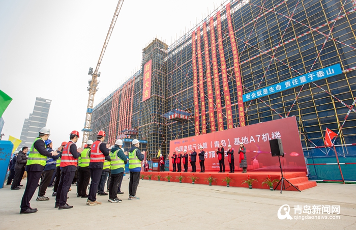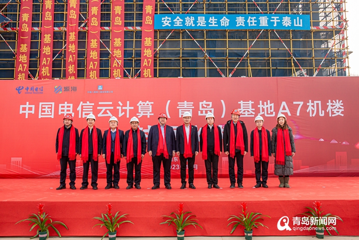 青岛新闻网12月28日讯(记者 朱颖)12月28日,中国电信云计算(青岛)基地完成A7数据机楼封顶仪式。青岛经济技术开发区管委副主任高勇、公共服务部部长赵茂南,中国电信山东分公司副总经理梁宏志、云网运营部主任周磊、重点工程办公室主任李云见、云网发展部副主任刘宁,中国电信云计算(青岛)基地总经理于念春,中建八局山东分局副局长张善友、中建八局二公司青岛公司副经理吴华,源海控股董事长曹培才出席仪式。