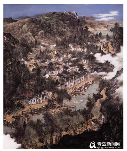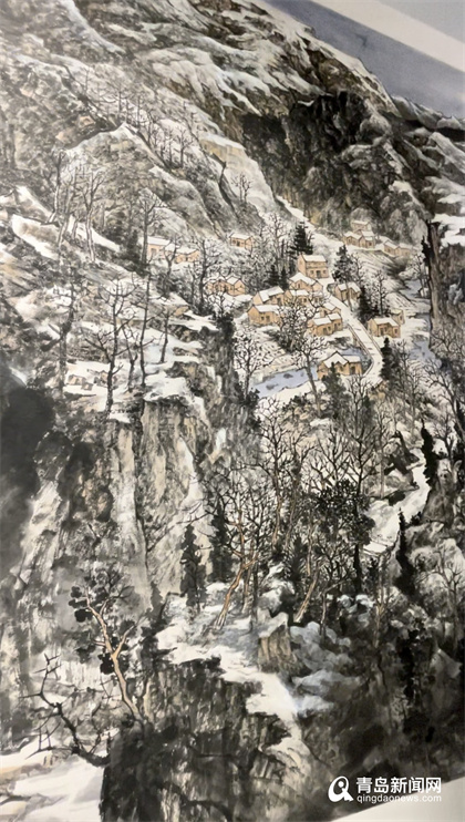 以画为媒,架起两地文化的交流与互鉴,也是此次李敦明画展在青岛举行的目的之一。此次画展策展人、大美墨韵美术馆馆长徐绍峰表示,此次在青岛举办“李敦明山水画精品展”,这不仅是两地文化交流的一次重要盛事,更是对李敦明先生艺术成就的盛大展示。“李敦明先生作为中国当代山水画界的杰出代表,他的作品以深厚的艺术功底和独特的审美视角,赢得了广泛的赞誉。他的山水画作,不仅展现了大自然的壮美与和谐,更融入了深厚的家国情怀和人文关怀,让人感受到艺术的无穷魅力和深刻内涵。”对此,李敦明表示,青岛之美,得天独厚,山、海、城融为一体,风光绝伦,“每次来青写生,都会住在崂山,颇有些‘躲进小楼成一统’的感觉,我对这里的每一块石头、每一片植被都很熟悉,这里也带给了我很多的创作灵感。这次在青岛举行个人画展,不仅仅是将我的画作进行展示,更想通过这次展览,将我的家乡之美介绍给青岛的朋友。”基于此,李敦明在选择展出作品时,除了大幅国展作品外,还有更多的作品反映着他的家乡大别山新县革命老区乡村巨变、繁荣富足、和谐美好、产业兴旺的美好景象。“两地相隔千里,但各具特色。”李敦明表示,希望自己的画展起到抛砖引玉的作用,继而带动两地书画家更多的交流互鉴,增强现代书画艺术氛围,拓宽学习交流渠道,展现不同艺术表现风格与魅力,这对两地的文化交流与提升必将产生积极和深远的影响。