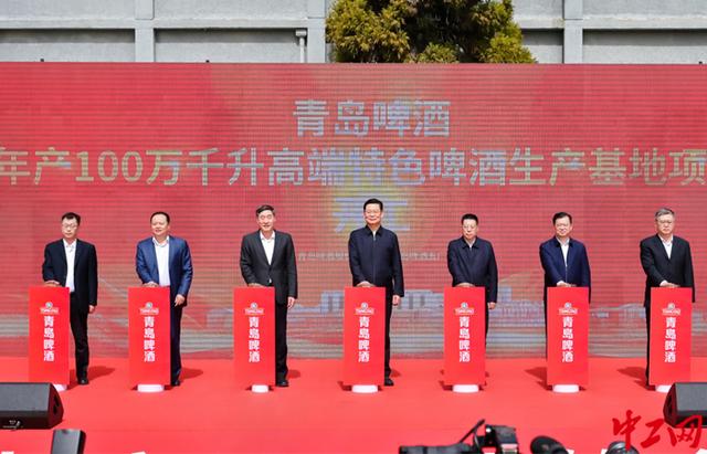 3月29日,青岛啤酒年产100万千升高端特色啤酒生产基地,在山东省青岛市崂山区青岛啤酒五厂开工。青岛啤酒供图