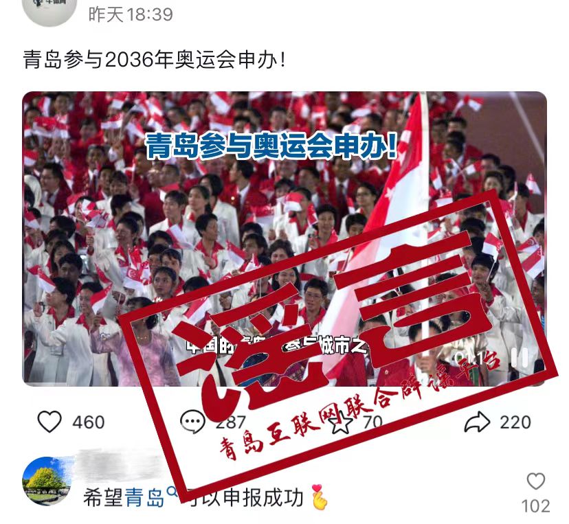 “青岛申奥”的消息最早由韩国媒体SBS报道,该媒体透露首尔有意申办2036年夏季奥运会,竞争对手包括中国青岛、印度新德里、德国柏林等多个城市。中国关于申办2036年奥运会传言比较多的城市主要集中在上海、杭州、成都等,但这些城市都公开进行过辟谣。