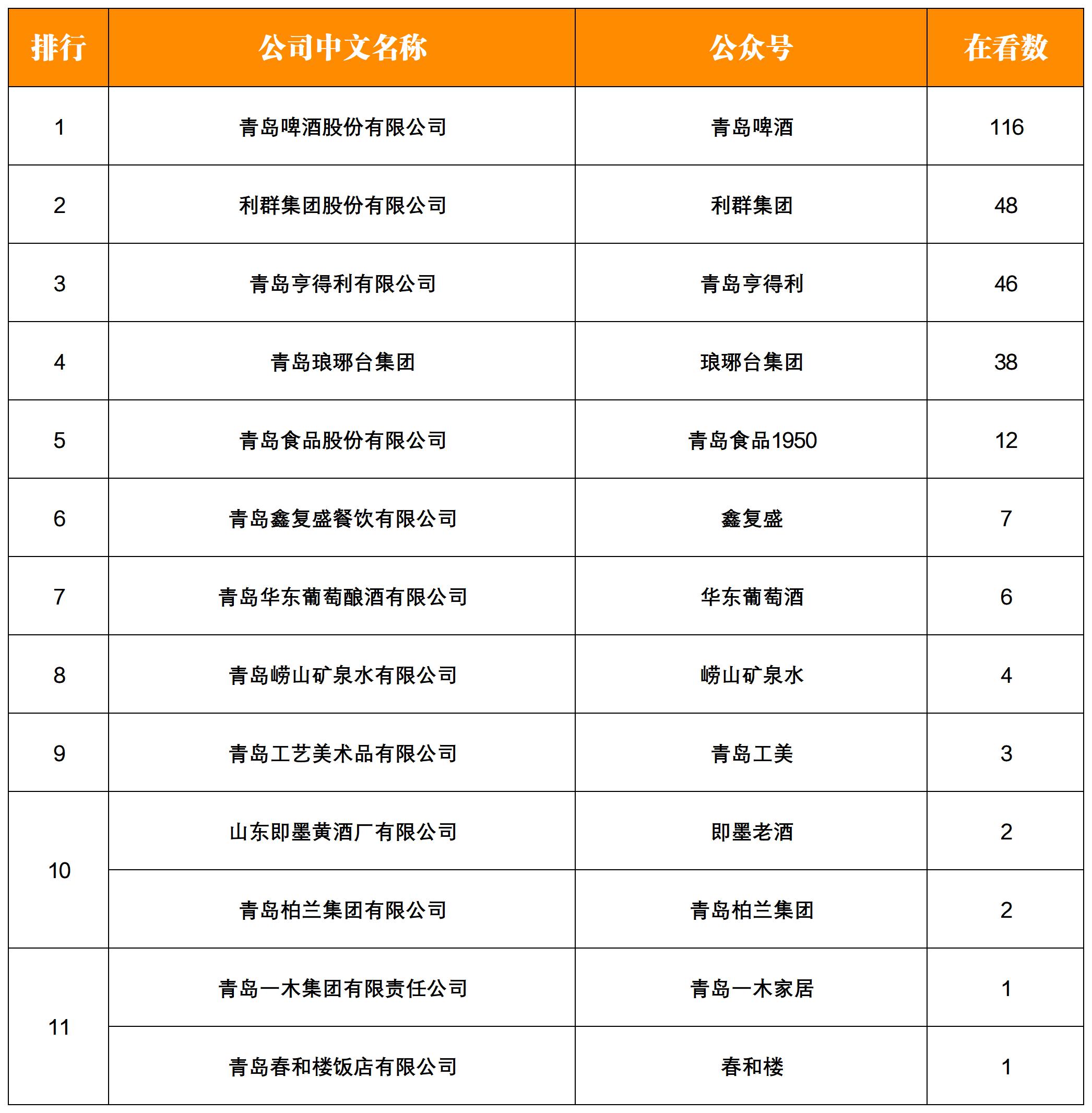 NO.11|权威发布:青岛老字号企业微信影响力月度排行榜TOP15
