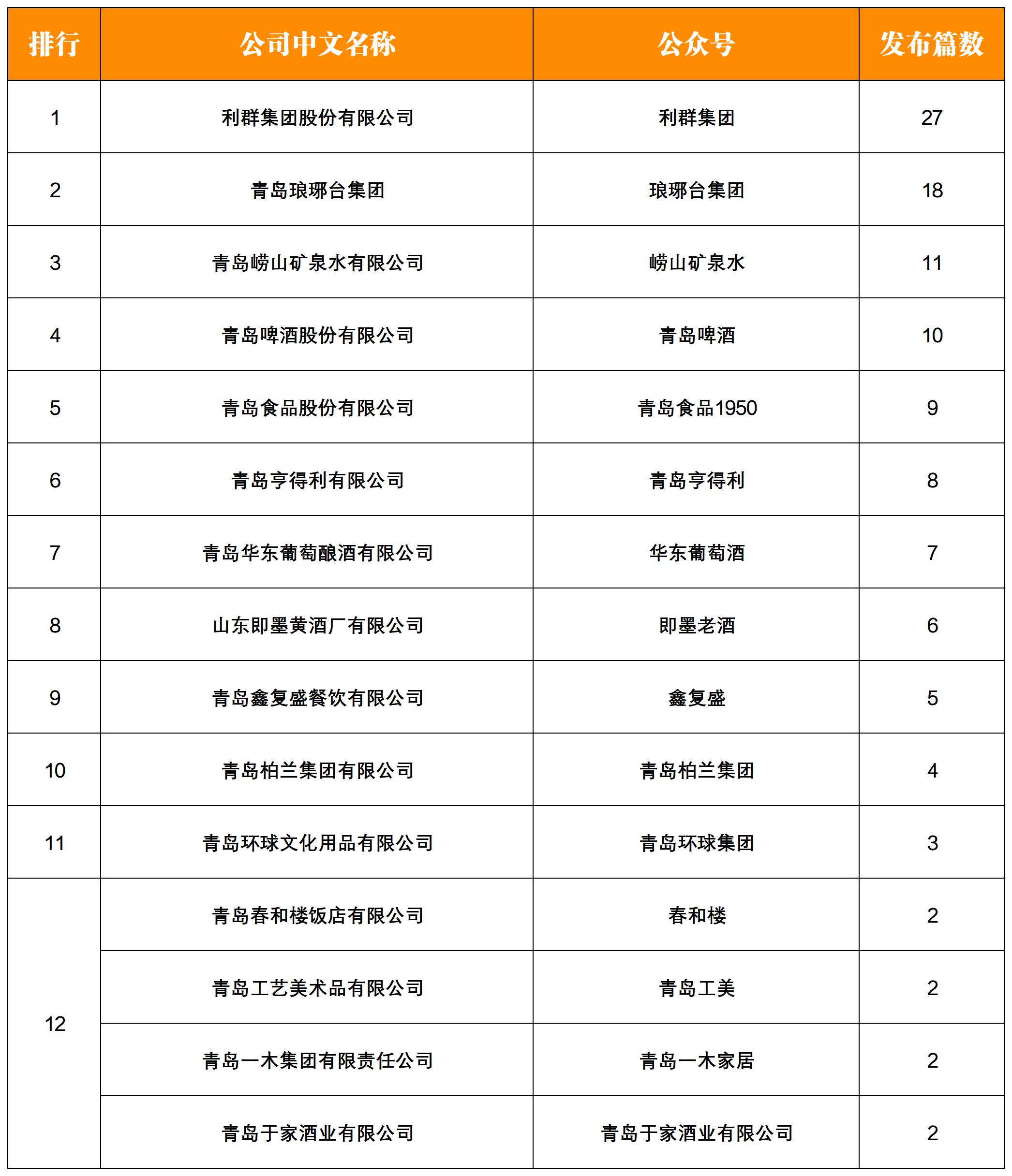 NO.12|权威发布:青岛老字号企业微信影响力月度排行榜TOP15