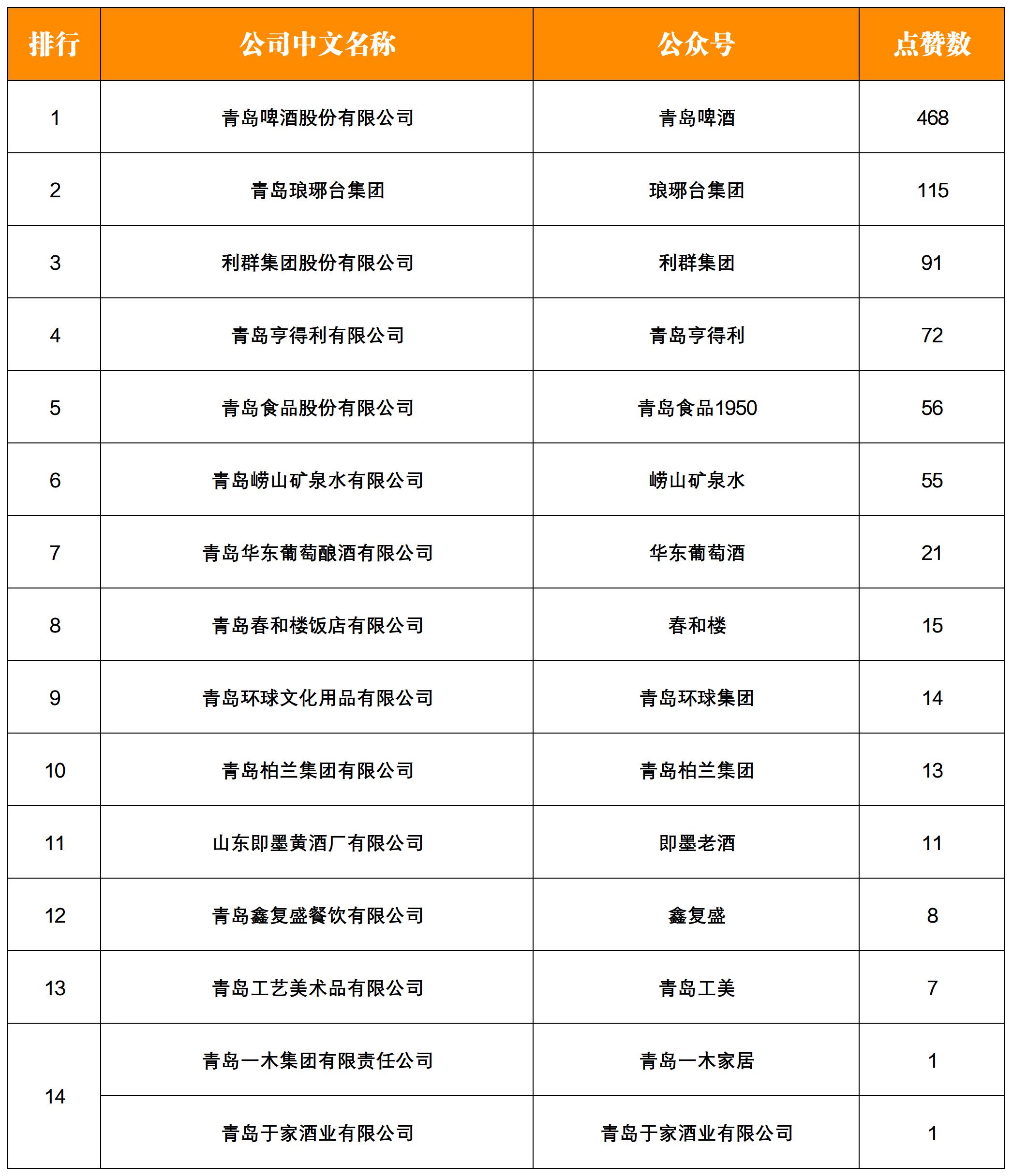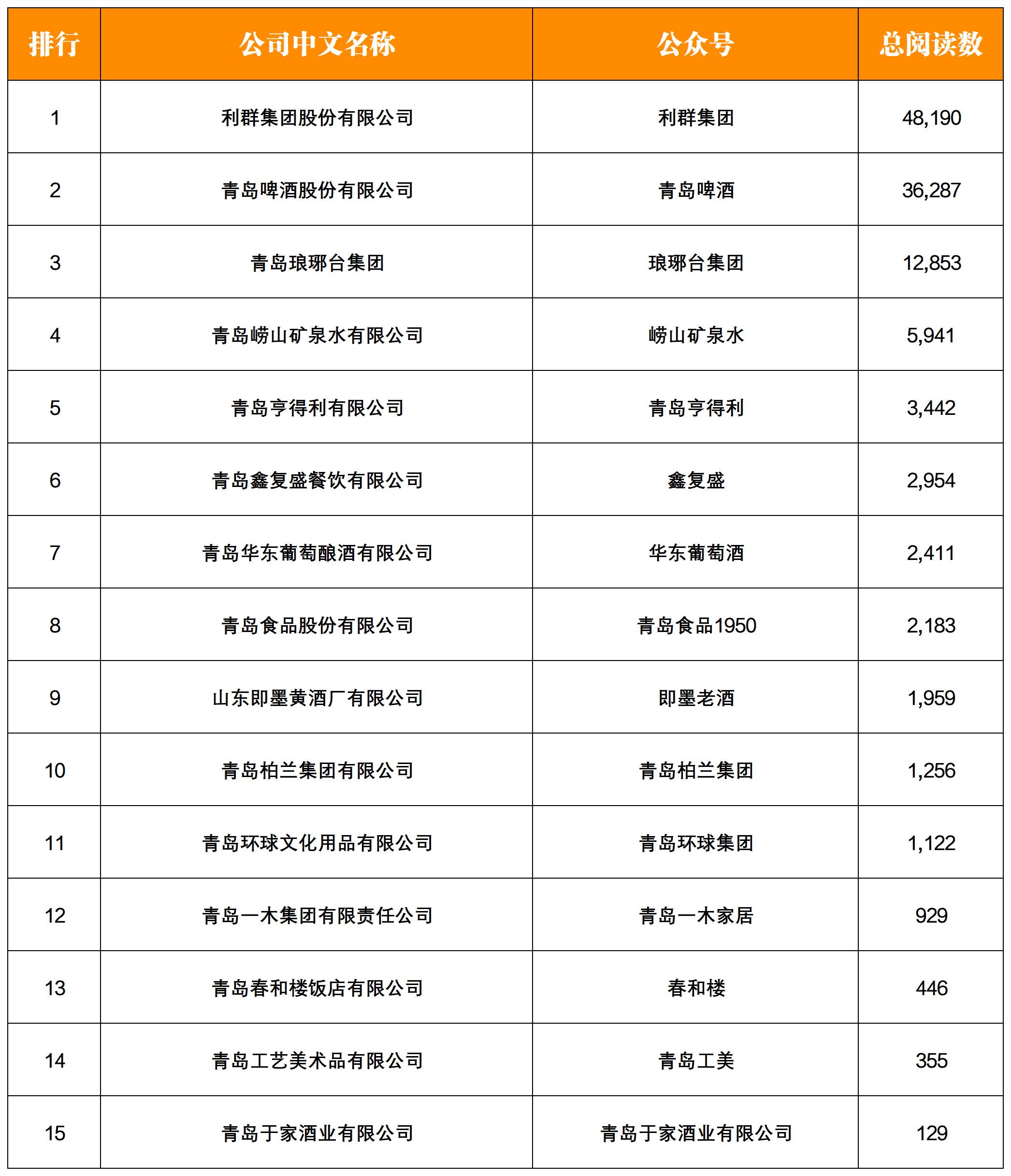 NO.1|权威发布:青岛老字号企业微信影响力月度排行榜TOP15