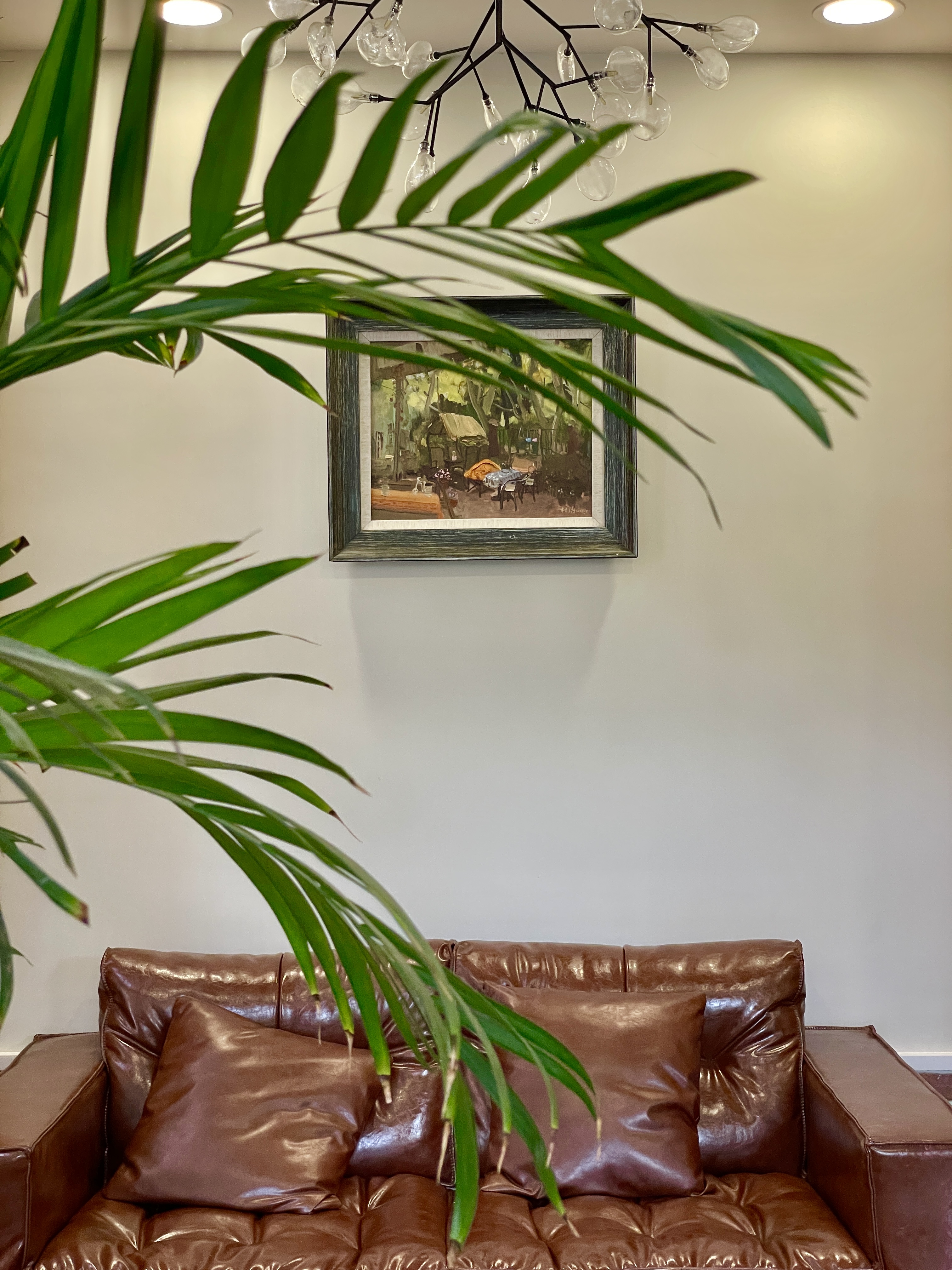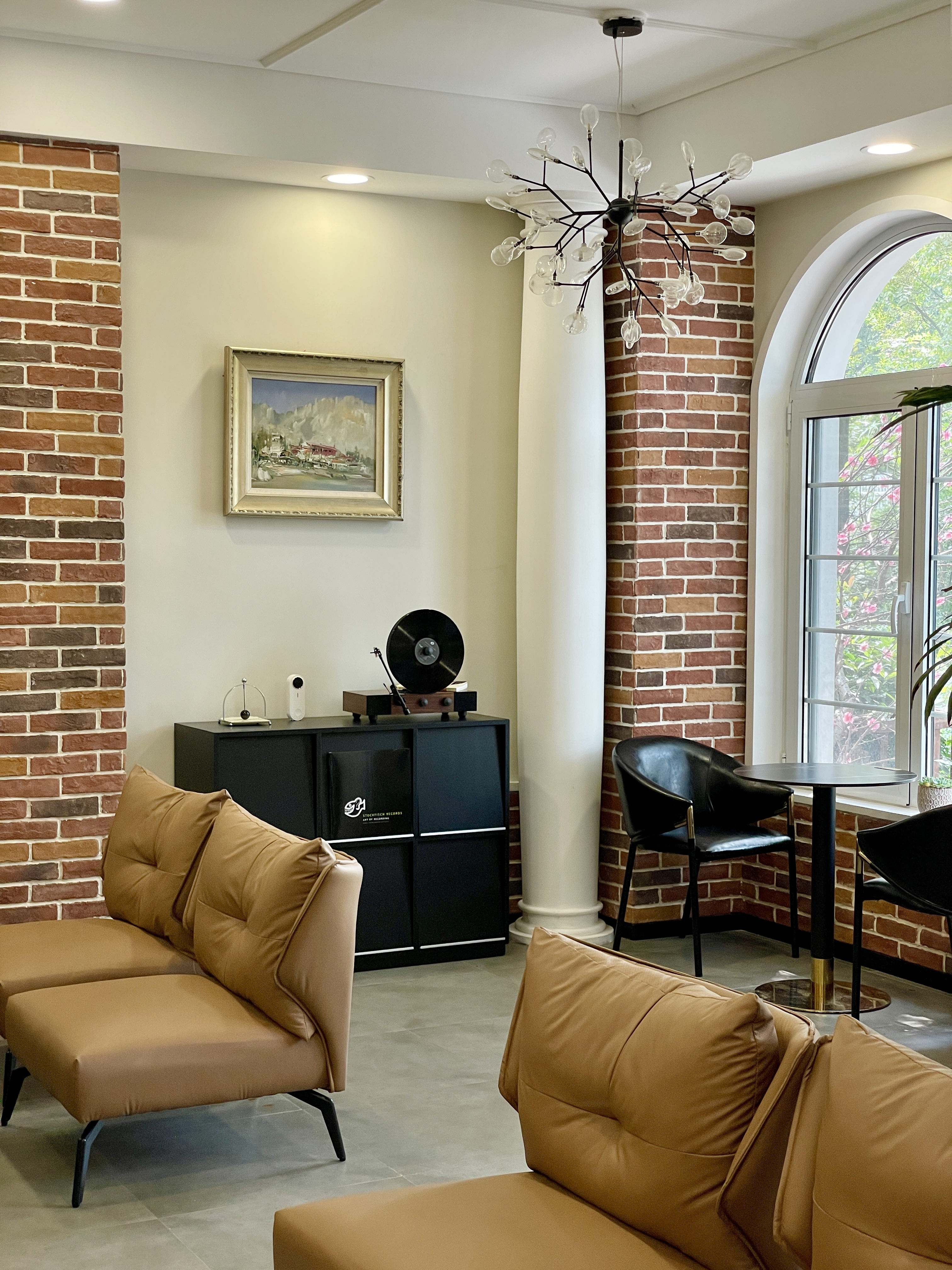 真皮沙发、黑色桌椅、油画、罗马柱......整体装修轻奢欧式中古风,还有一个单独的阅读空间,室外有一架被梵高的星空包裹的钢琴,让世界名画伴随着音符流动起来。户外区域很大,特别适合做一些沙龙活动、私宴派对、生日会。