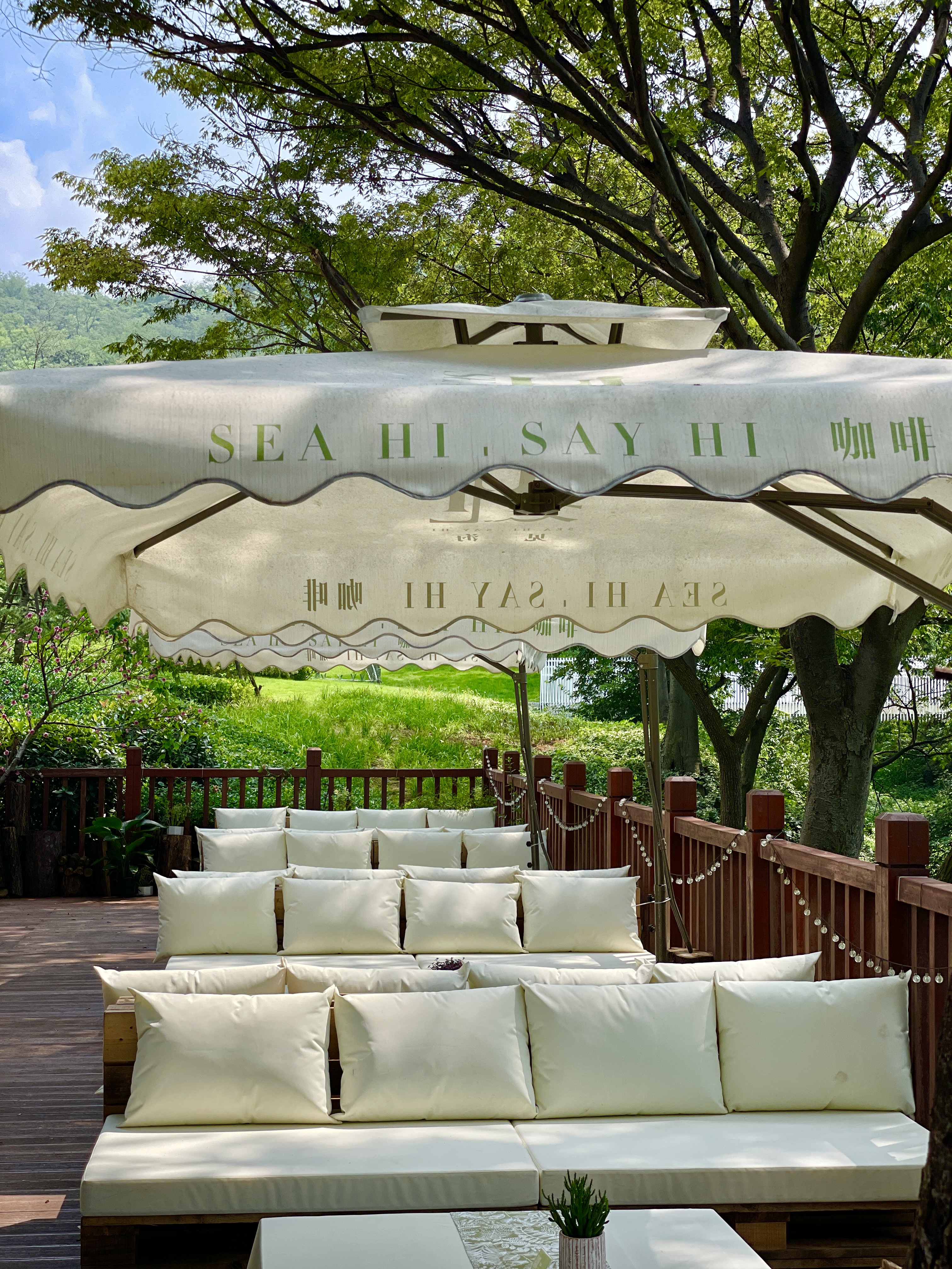 青岛新开了一家公园咖啡,就在中山公园——Sea Hi Cafe。绿植环绕简直就是一座森林氧吧,天气晴朗的时候院子里就可以看到海,店名也是因此而来。