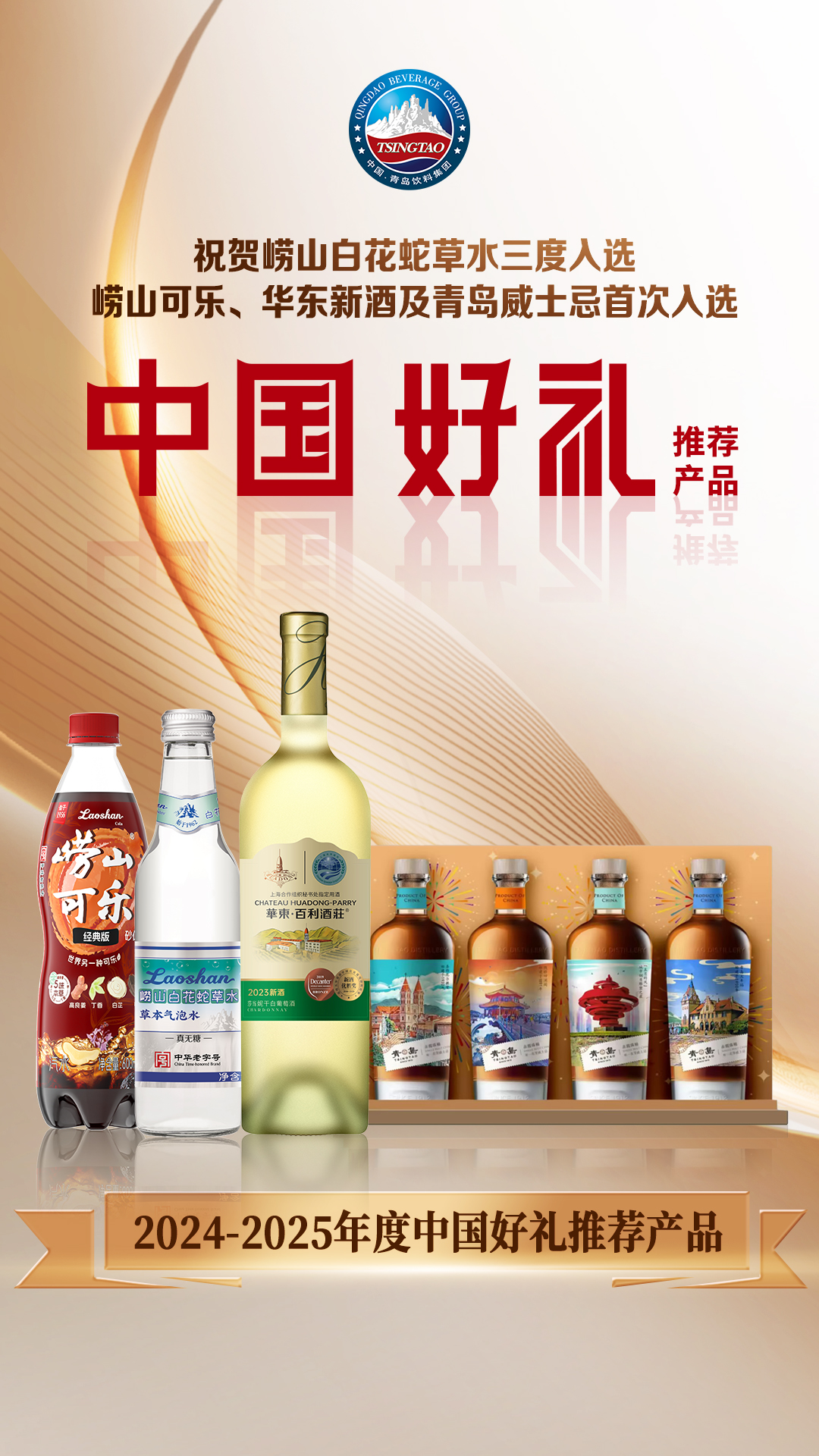 近日,中国好礼产业促进计划2024-2025年度推荐产品评审结果在北京正式发布。经过层层严格筛选,饮料集团旗下共四款产品入选发布评审结果,崂山白花蛇草水凭借其卓越品质,连续三年入选“中国好礼”,崂山可乐、华东百利酒庄的新酒·莎当妮干白葡萄酒以及青岛威士忌-城市系列首次脱颖而出,荣获“中国好礼”称号,成为代表中国品质与文化的优秀产品。