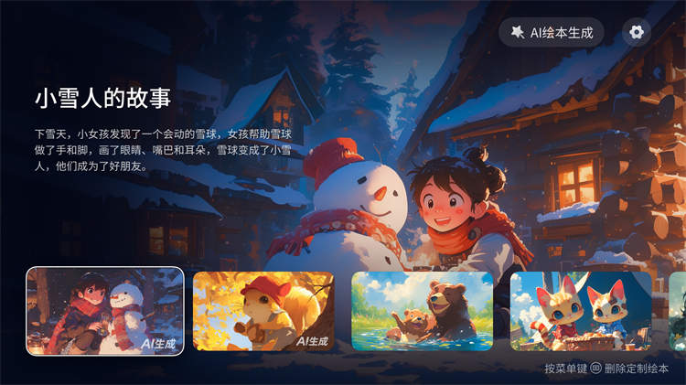 其中,基于星海大模型强大的对话理解能力,海信行业首发一句话多意图、全域全双工对话模式,实现多个任务一句话完成、一次唤醒持续交互,且独家支持语音打断,极大提升用户的交互体验。同时星海大模型突破多模态生成的角色一致性、内容连续性等行业技术挑战,实现指定风格下用户自由创作,已发布艺术壁纸生成、儿童绘本创作等AI原生应用,为大屏显示提供丰富的内容创作能力。根据孩子的描述,可以实现AI生成故事绘本。