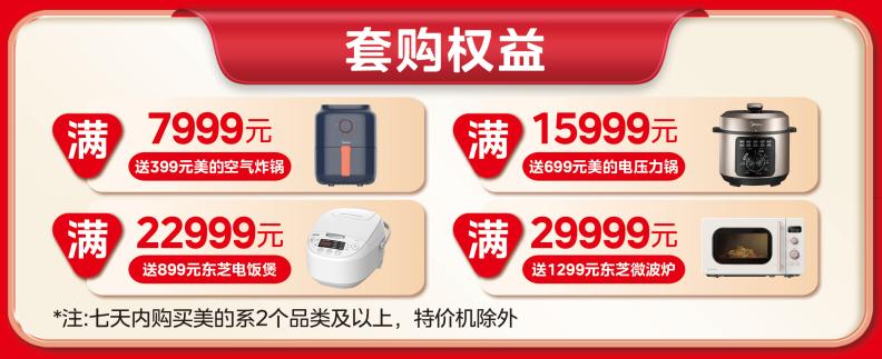 火三月期间七天内购买美的系产品两个品类以上,满额即送家电好礼,最高可得价值1299元东芝微波炉一台。