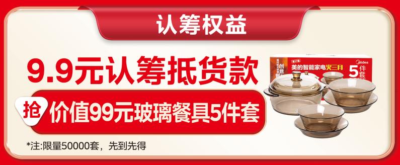 火三月期间,9.9元提前认筹,送价值99元玻璃餐具五件套(限量50000套),认筹金额同时可抵货款。
