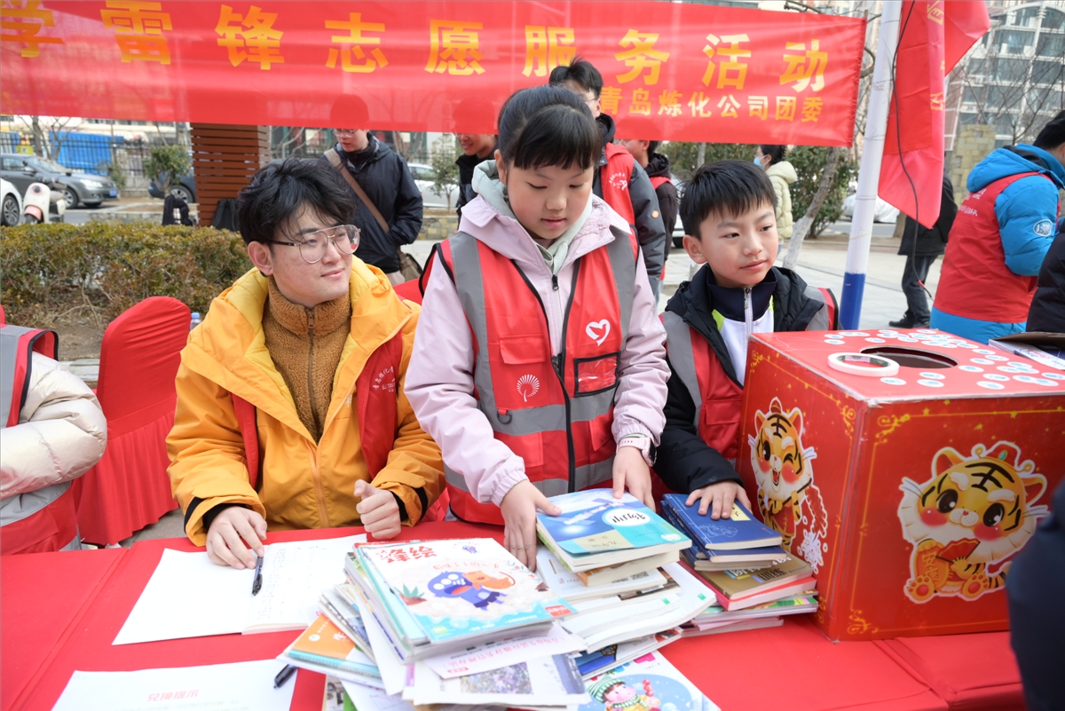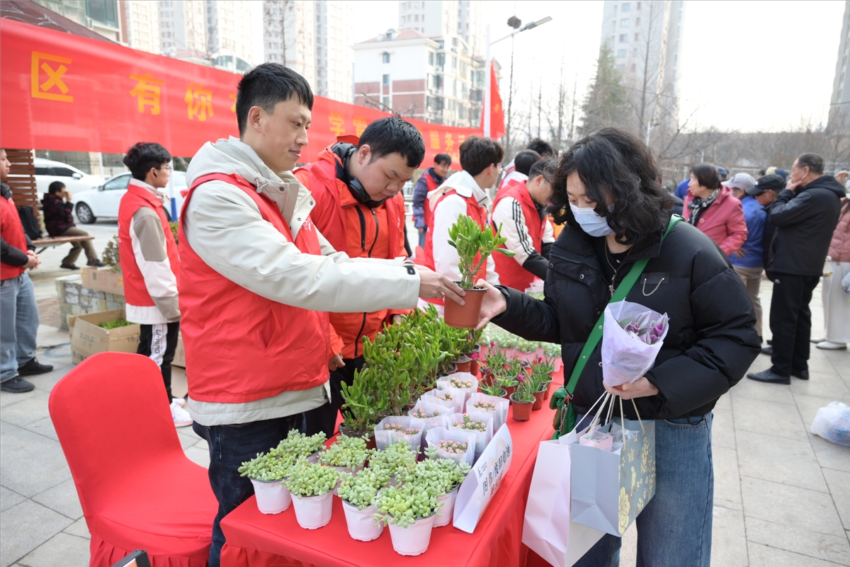 消防科普的对面,社区居民们在青年志愿者的引导下有序排队,利用手中的废旧电池和图书兑换绿植。“青岛炼化公司志愿者们每年都会组织类似的环保活动,正得益于这些活动,我们的环保意识逐渐提升,家里的孩子们也学会了科学保存废旧电池。”社区居民李先生是连续第三年参加废旧电池换绿植活动,他非常高兴地说到。