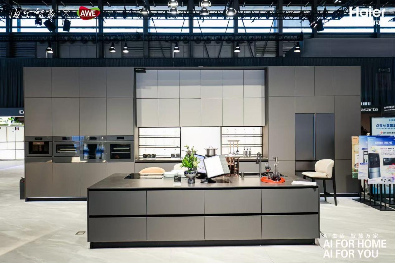 海尔展区很“AI”,极简智控最懂懒人心。全套超薄嵌入设计的奶白色海尔小红花套系除了好看,更把“一划、一挥、一键”的懒人哲学发挥到极致。跳完一节健身操满头汗不能直吹空调,打开“海尔好空气”小程序手指一划就能调整风向,还有AI自适应新风改善室内空气;菜都下锅了才发现没开烟机,小手一挥就能轻松启动,再不用担心油手弄脏面板;吃完饭不想洗碗,全交给海尔洗碗机,一键智洗自动匹配洗涤模式和时间,还能智能开门烘干。