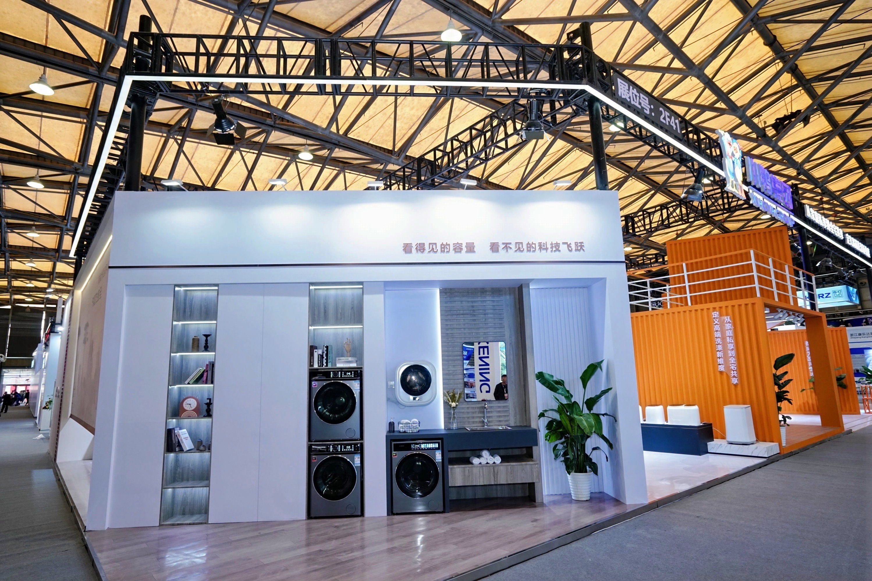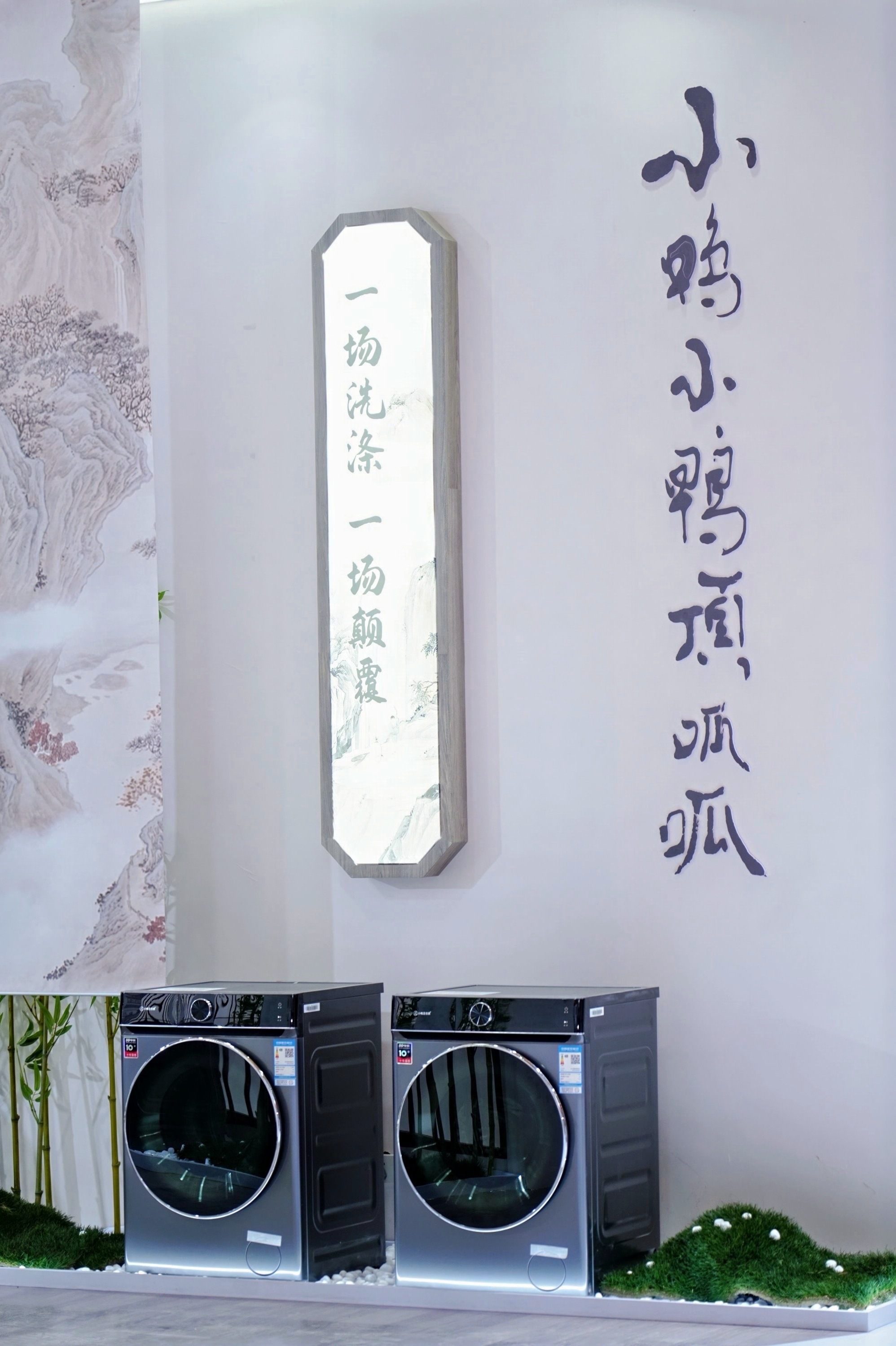 展厅里,涵盖滚筒洗、波轮洗和迷你洗三大系列的家用洗衣机,以多色彩搭配与540mm超大筒径设计为突出亮点,不仅在外观上引领时尚潮流,在性能上实现了更洁净、更低耗的洗涤效果,为用户带来前所未有的洗涤体验,让洗涤成为一种美学享受。