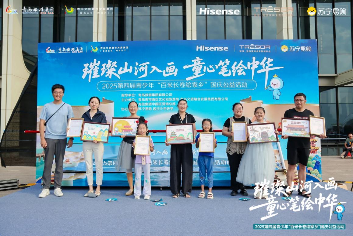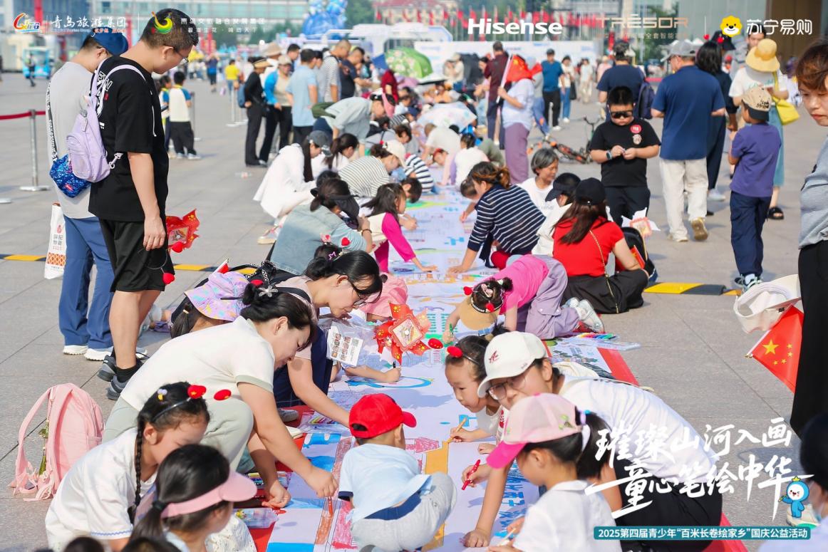 在金秋送爽、举国同庆的日子里,由青岛旅游集团指导,青岛市市南区文化和旅游局、青岛文旅融合发展集团、海信中国区营销总部主办,苏宁易购、远行少年研学协办的第四届青少年“百米长卷绘家乡”国庆公益活动在青岛奥帆中心国际会议中心前南广场圆满落下帷幕。150组家庭齐聚一堂,以手中画笔共绘山河壮丽,以童心创意礼赞祖国华诞,为这座海滨城市增添了一抹动人的文化亮色。