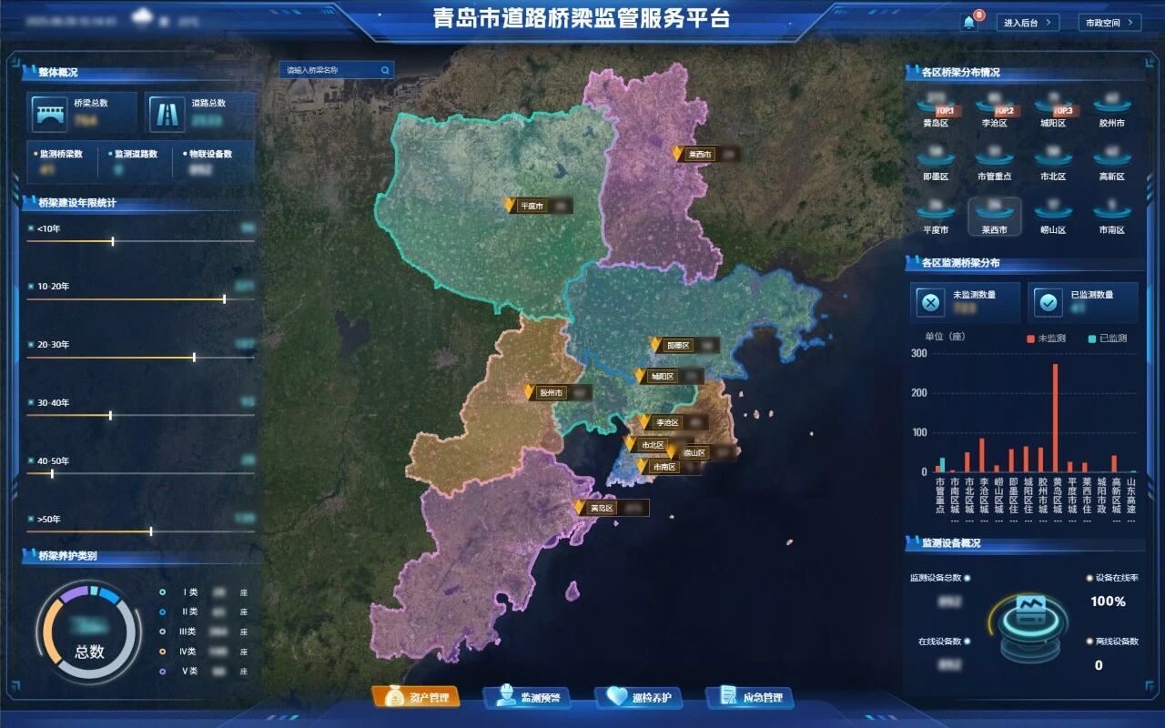 海纳云为其量身打造了一套全维度、全天候、全生命周期的整体桥梁监测解决方案,打造城市生命线工程的“青岛样板”。