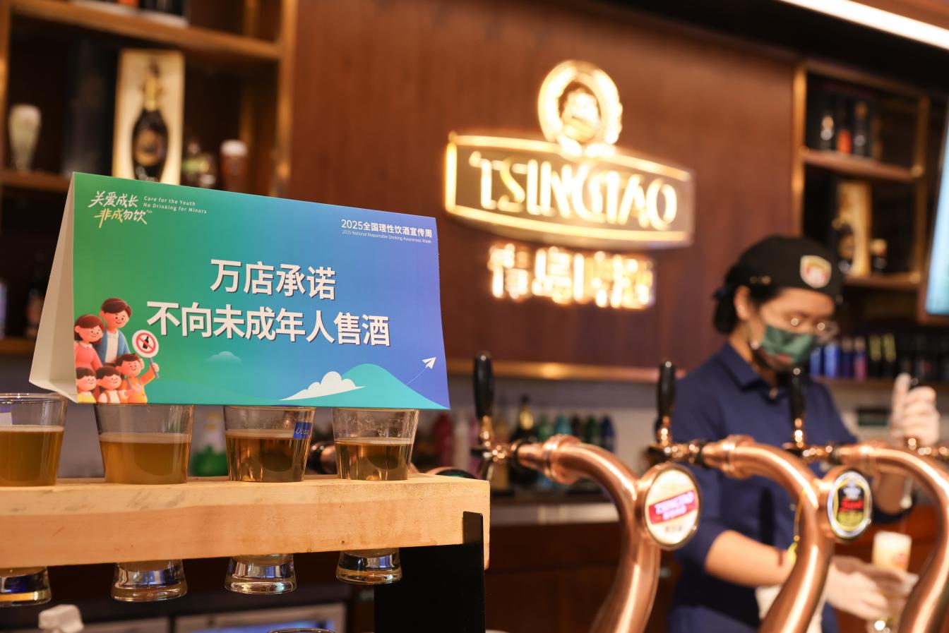 在青岛的TSINGTAO 1903酒吧,服务员小李遇到带孩子的家长,总会提醒一下“咱的酒不给孩子尝”客人们都挺认同。一位年轻的消费者表示:“我常来这,青啤的新品总是又潮又好喝。但还有一点让我非常有好感的,是他们会主动提醒你适量,还坚决不卖酒给未成年人。这种感觉很棒,说明我喜欢的品牌,三观很正。”他觉得,这事儿做得实在,这让专业的啤酒服务,更添一层温暖的关怀。